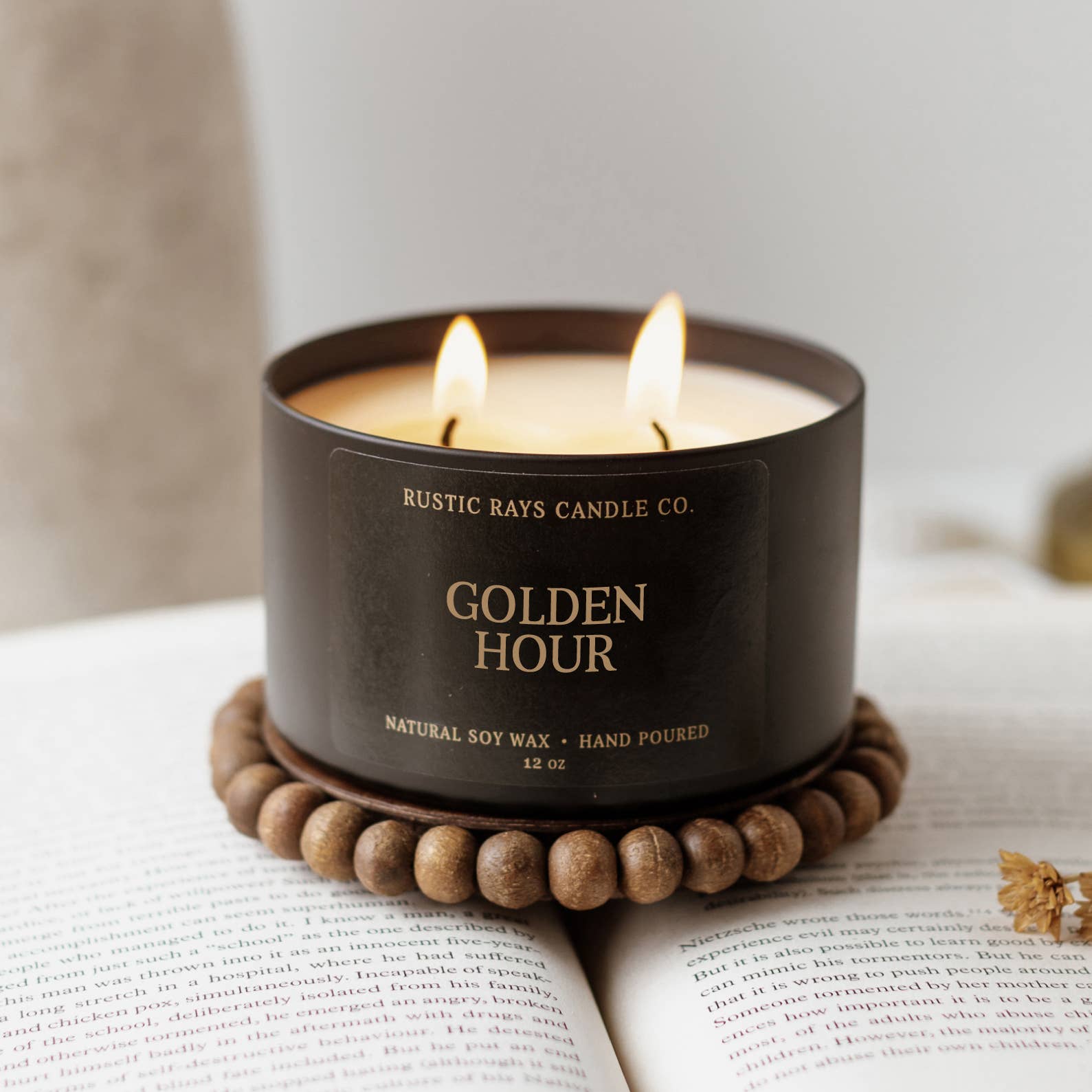 GOLDEN HOUR FRAGRANCE NOTES Mandarin / Peach / Jasmine / Vanilla / Tonka Bean Our Golden Hour soy candle gives you the relaxing feeling of watching the sunset during a warm Summer evening. Cozy notes of sandalwood and tonka bean fill the air while the last of the days sun is shinning down on you. A breeze rolls through bringing with it lighter smells of distant citrus and florals. Our signature matte black vessels hold two wicks with superior scent, making them extremely popular. CANDLE DETAILS • Net Wt. 12 oz (340 g) • 55+ Hour Burn Time • 100% Soy Wax • Cotton Wicks (Lead Free & Zinc Free) • Premium Fragrance Oils (Phthalate-Free, Paraben-Free, Vegan-Friendly) • Matte Black Tin (4 W” x 2.75 H”) • Hand Poured in Illinois, USA Mothers Day, Organic, Candles Wholesale, Easter Basket Stuffers, Candles, Spring, Insider Shipping, Mother’s Day Gift, Fathers Day, Summer Shop, Clean Burning, Non-Toxic, Unique Gifts, Handmade, Vegan Scented Candles, Spring 2026, Modern Aesthetic