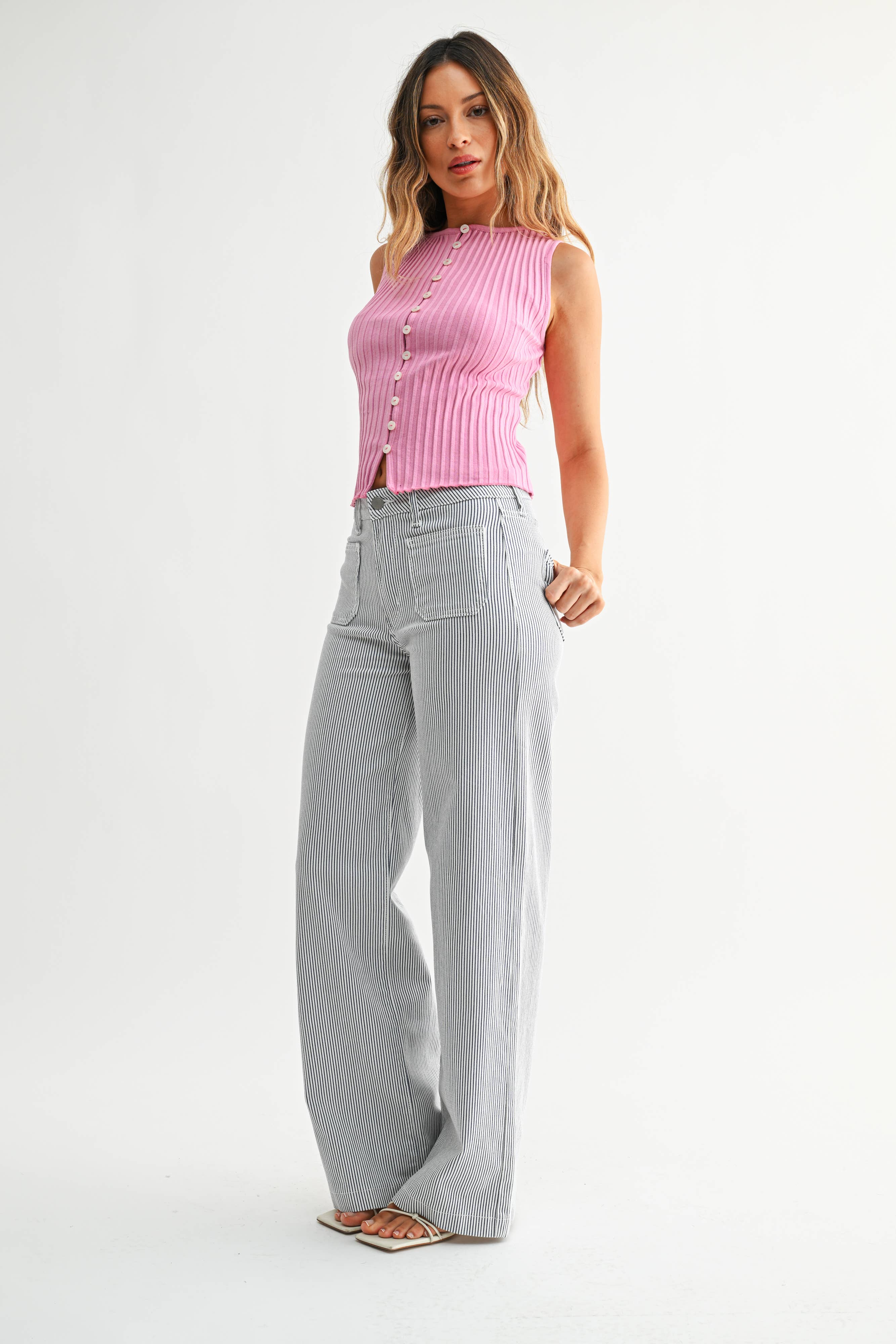 11" RISE, 31" INSEAM, 11" OPENING Stripe - Mini Patch Pocket Wide Leg 12 unit pre-pack: (1) 24, (1) 25, (2) 26, (2) 27, (2) 28, (2) 29, (1) 30, (1) 31