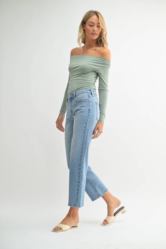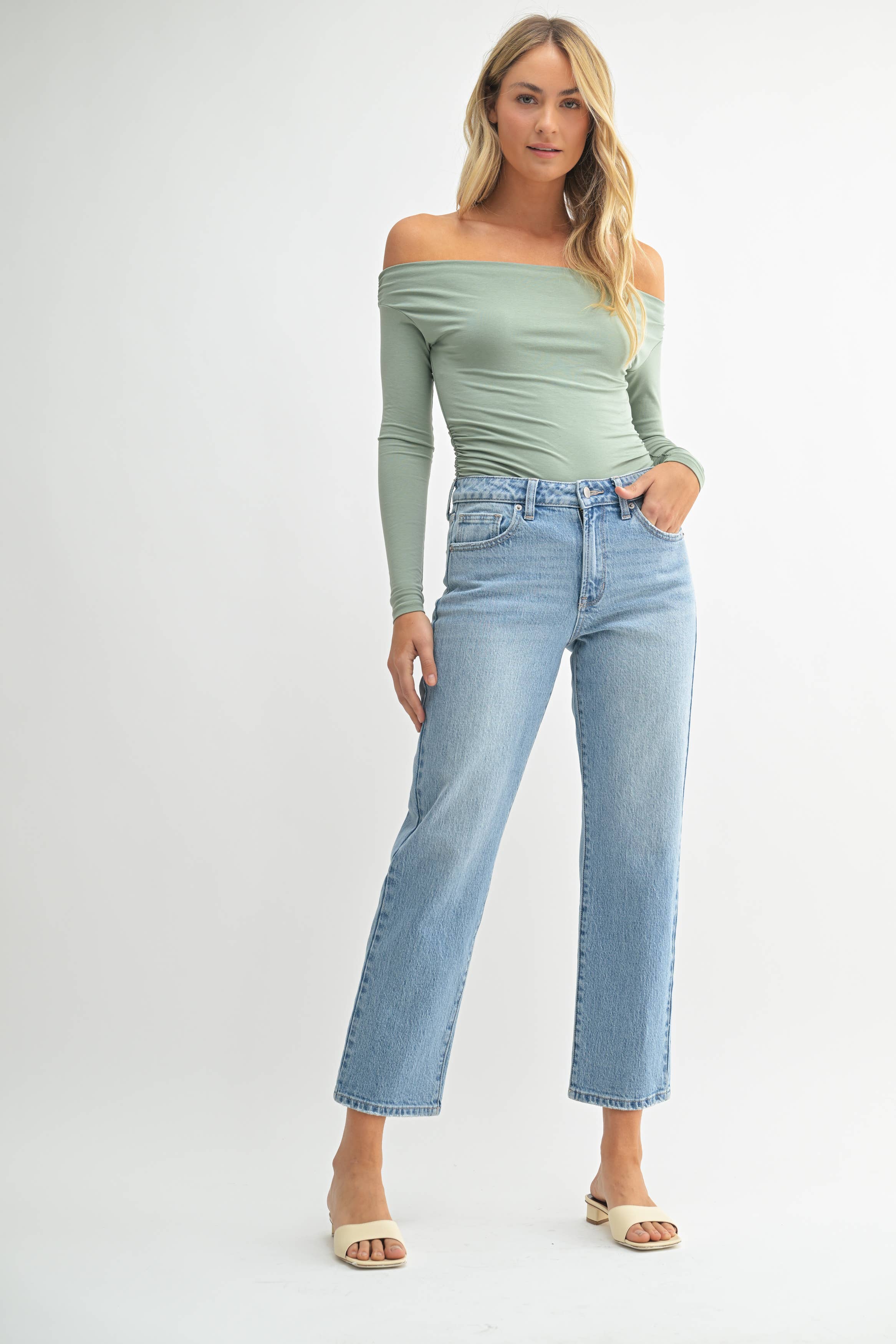 10'' RISE, 28'' INSEAM, 12'' OPENING Light Denim - 90's Stretch Straight CASE PACK: 0-1; 2-1; 4-2 ; 6-2 ; 8-2 ; 10-2 ; 12-1 ; 14-1