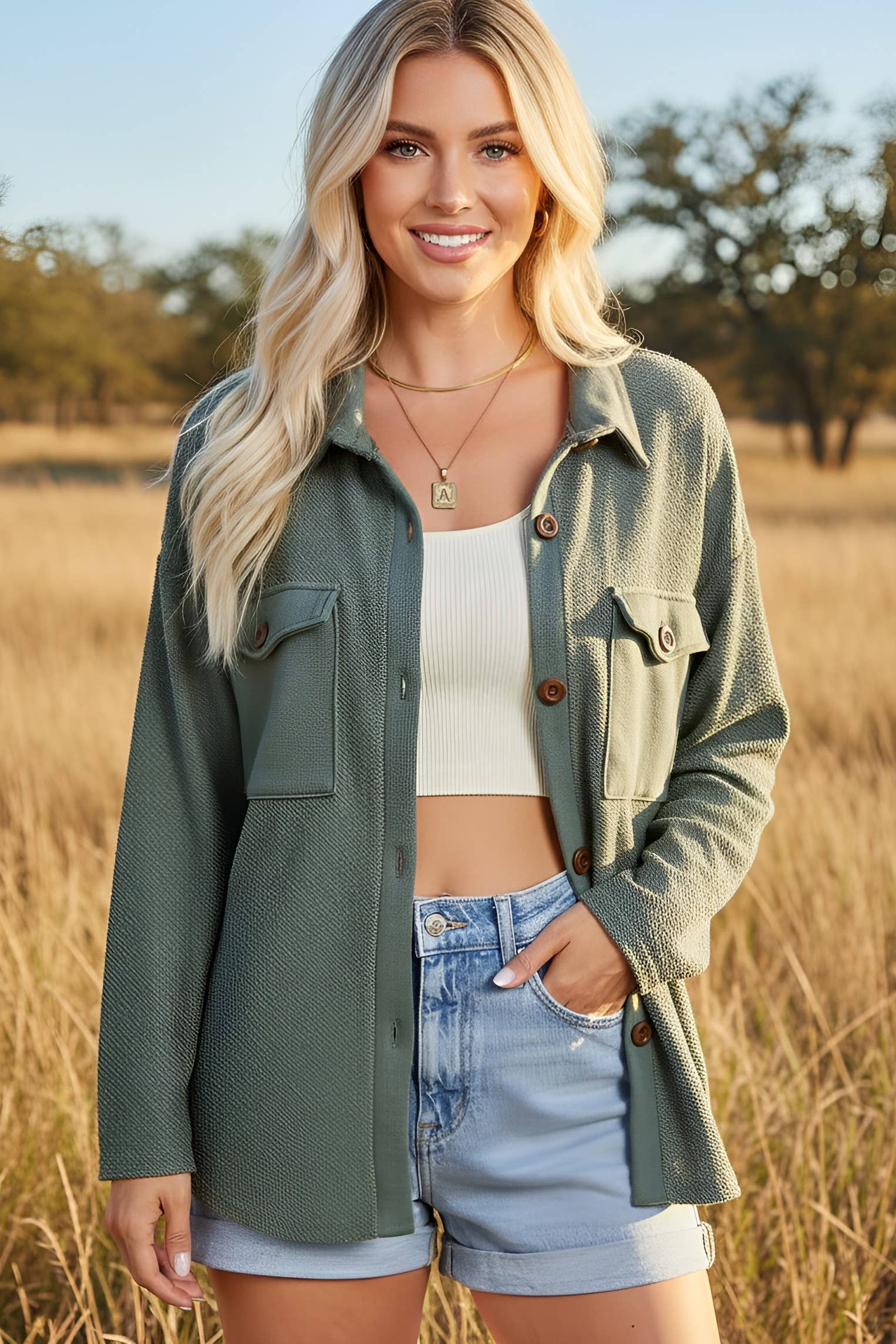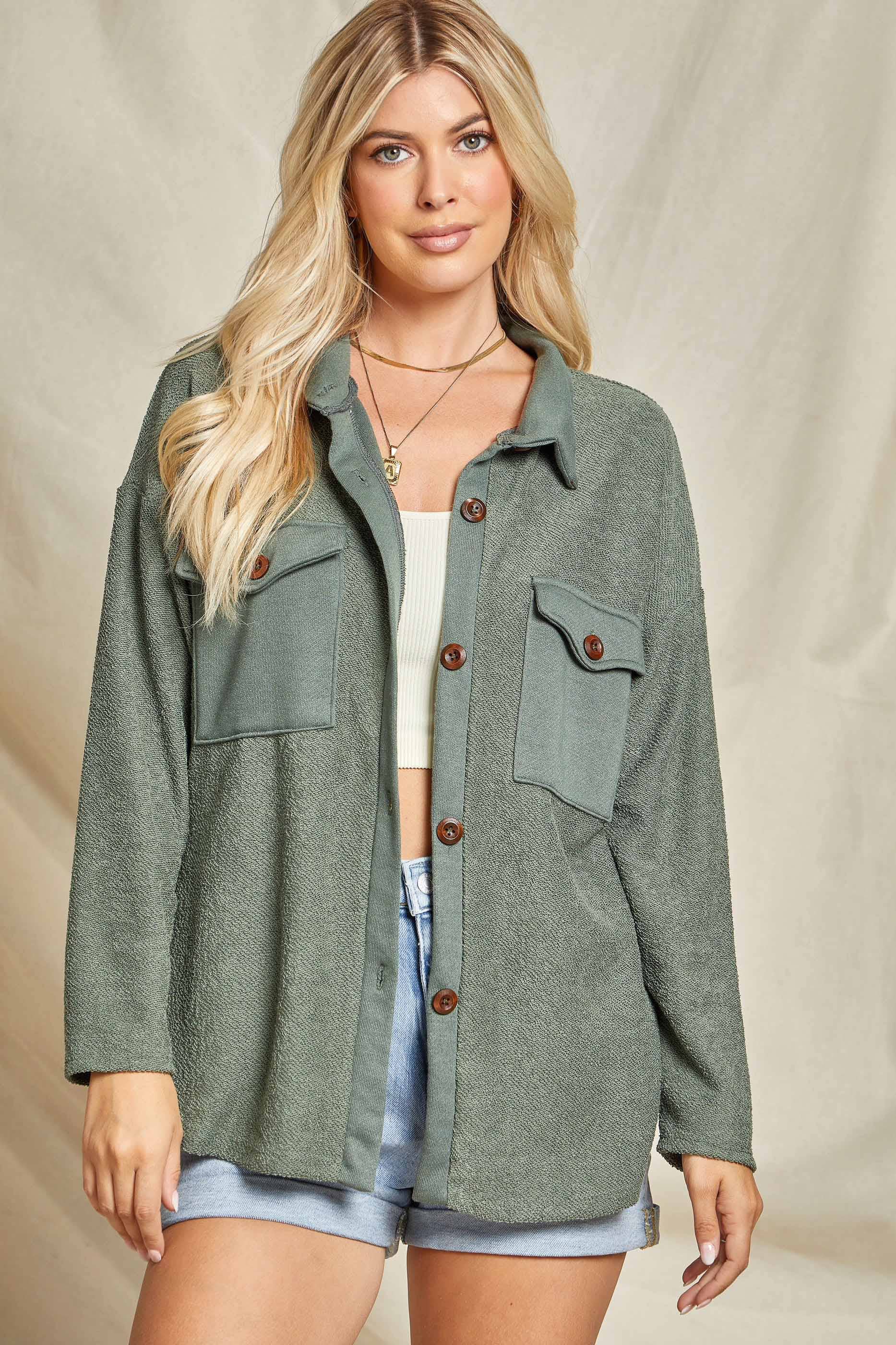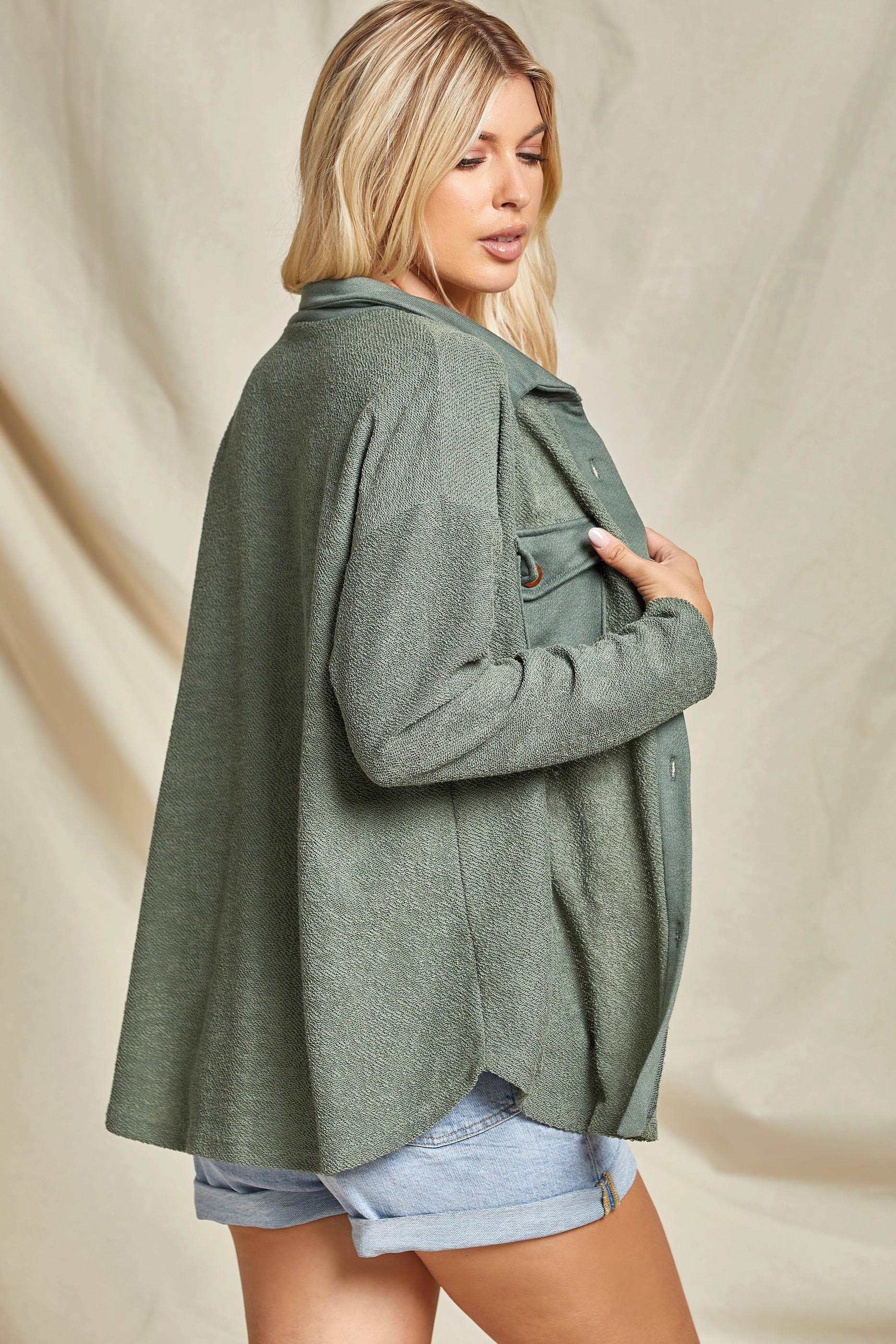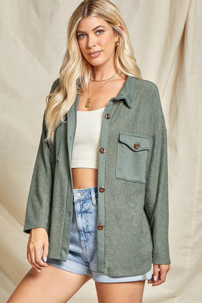 Fiona's French Terry Shacket - Hunter Green