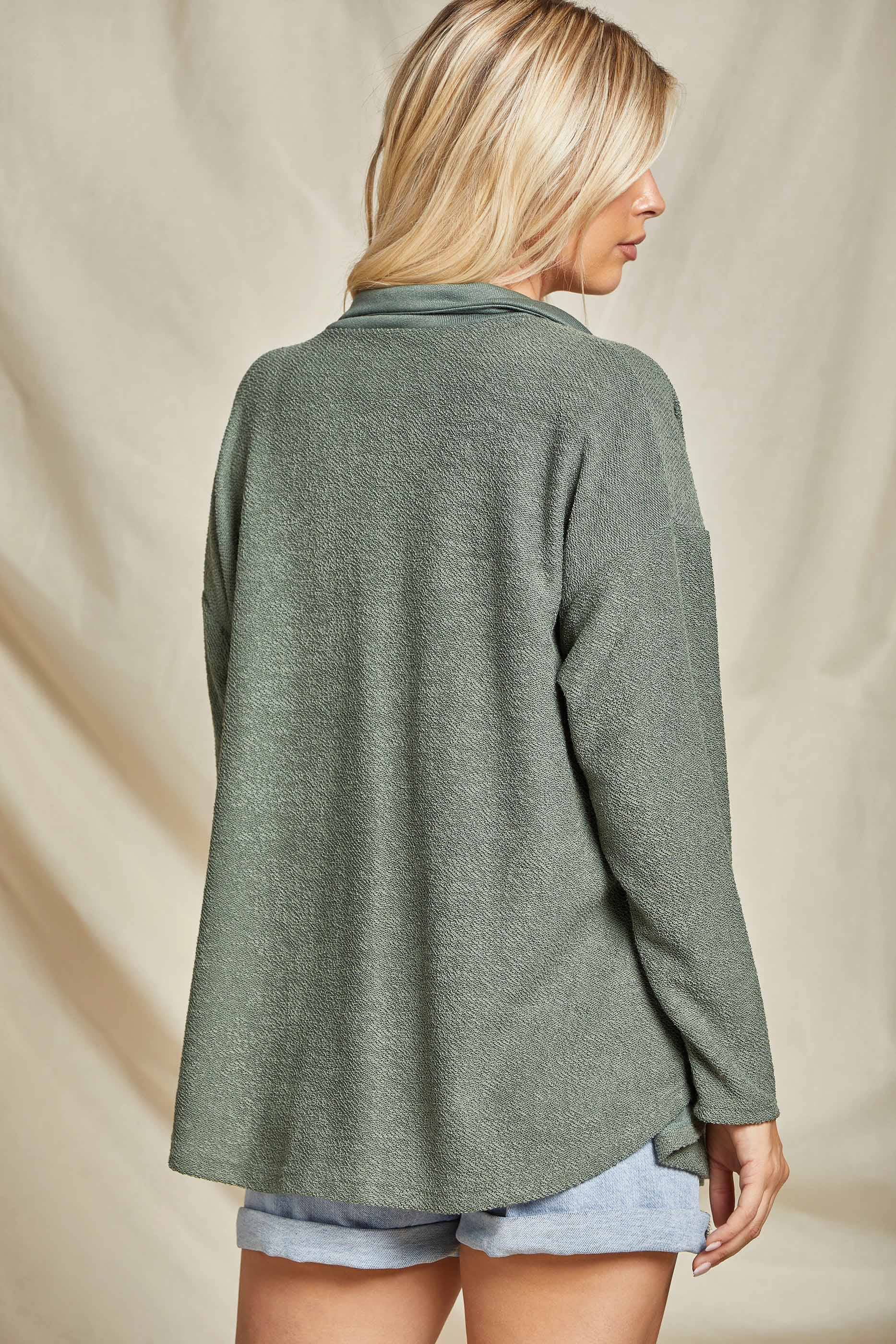 Effortlessly layered sophistication meets comfort in this essential shacket. Crafted from premium French cotton terry cloth, it drapes with understated elegance while maintaining a relaxed, lived-in feel. Natural coconut buttons add an organic touch to the hunter green hue, creating a versatile piece that transitions seamlessly from casual to refined. Perfect for layering over basics or wearing solo, this shacket becomes an indispensable wardrobe staple for those who appreciate quality construction and timeless style.