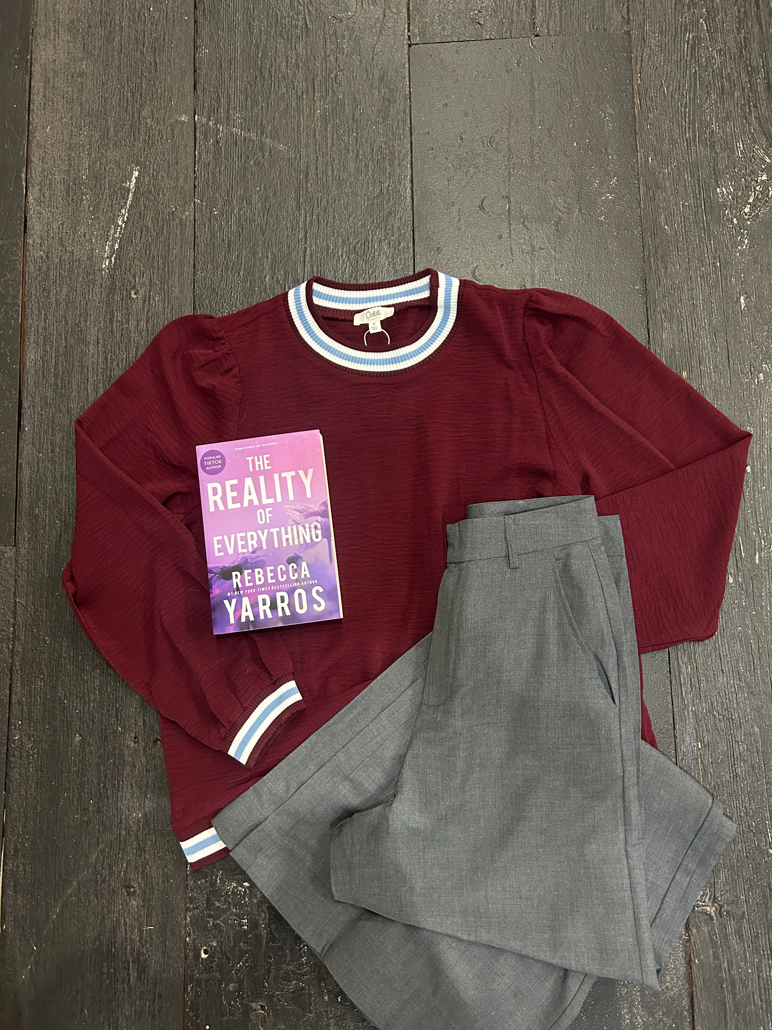 Discover timeless elegance with Mindy's Top in a rich burgundy hue. Perfect for any occasion, this top combines comfort with style, featuring a flattering silhouette and soft, breathable fabric. Whether paired with your favorite jeans for a casual outing or dressed up with a skirt for a night out, Mindy's Top is versatile enough to suit your unique style. The attention to detail in its design ensures a perfect fit, making it a must-have addition to your wardrobe. Elevate your fashion game with Mindy's Top and embrace a touch of sophistication.