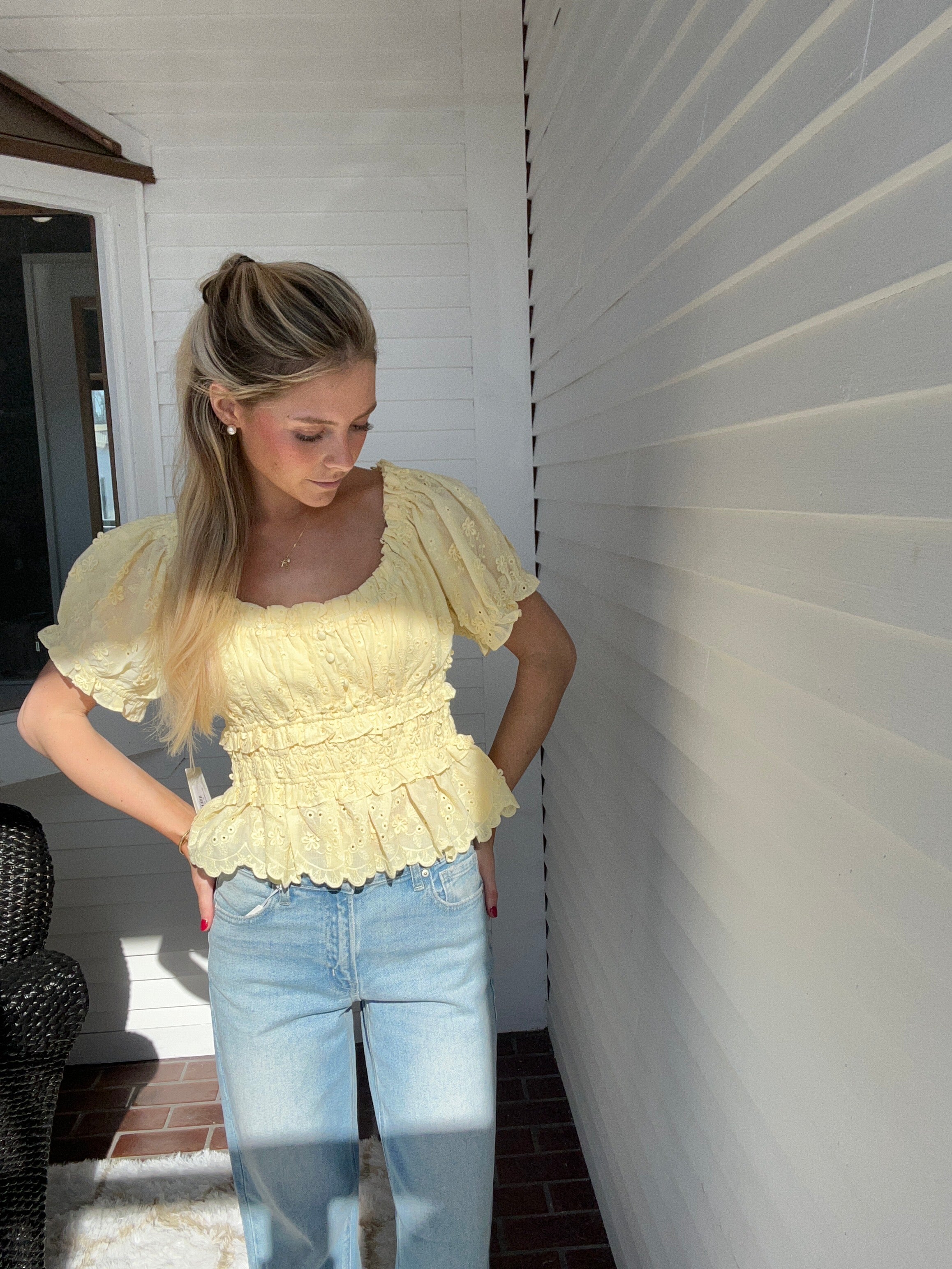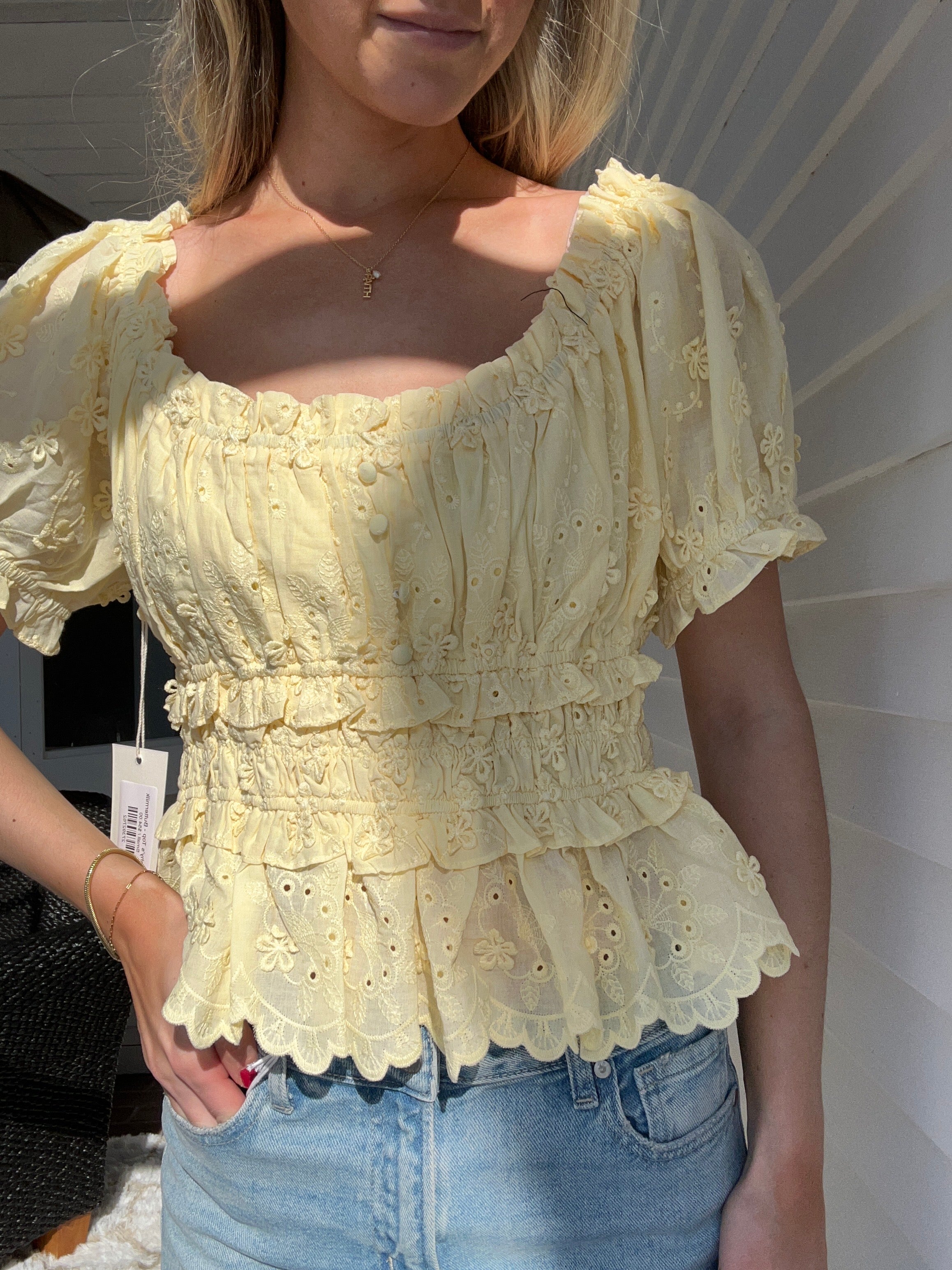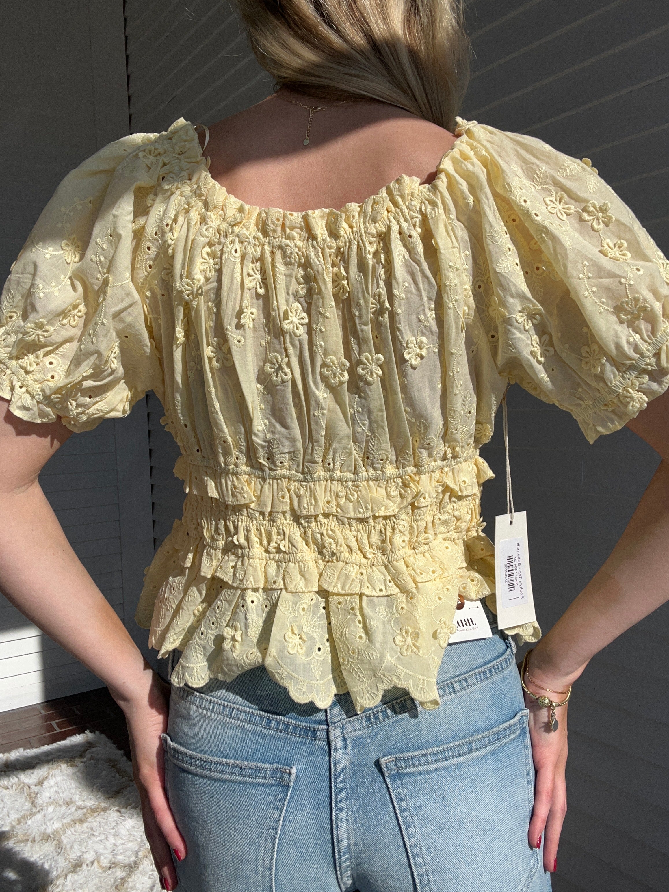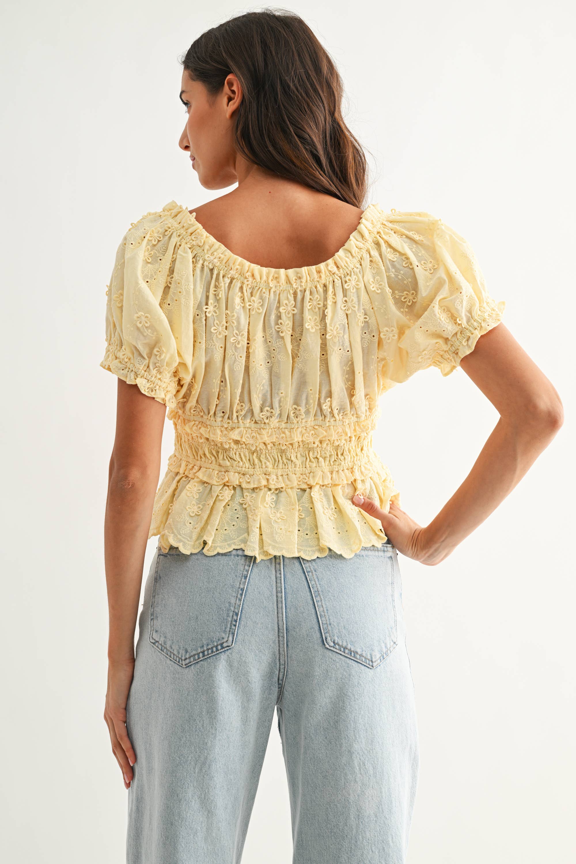 Experience the allure of impeccable craftsmanship with this yellow embroidered peplum blouse. Designed for discerning individuals who appreciate subtle sophistication, this blouse seamlessly integrates timeless embroidery with a contemporary silhouette. SELF: 50% COTTON, 50% POLYESTER LINING: 100% RAYON Model is wearing a size S Model : 5'9" - B 32" - W 24" - H 36.5"