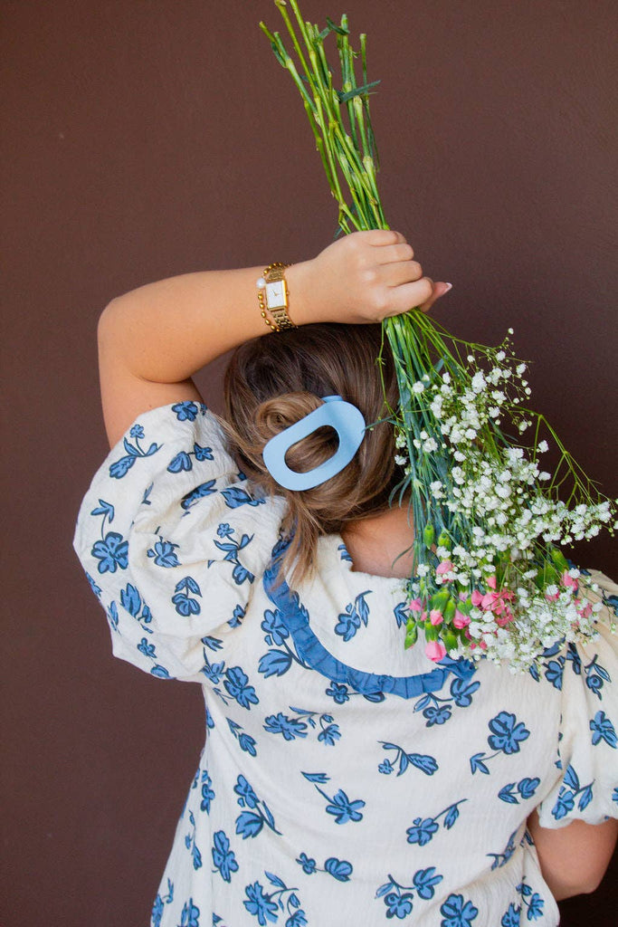 These round cutout, flat claw clips are so cute and functional! Their shape makes them so comfortable during any activity. How often can you find an accessory that is unique and cute but also, so incredibly practical? Wear it every day around the house, during your workouts, to work, or for your next girls night, it'll always match the vibe. It is a large 3.75 inch flat claw clip.