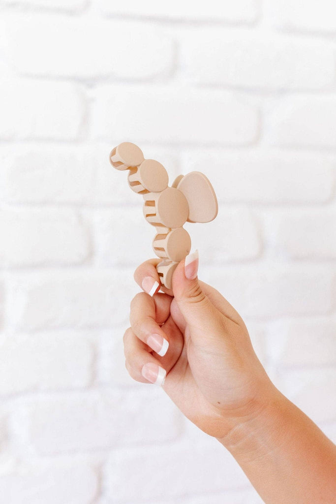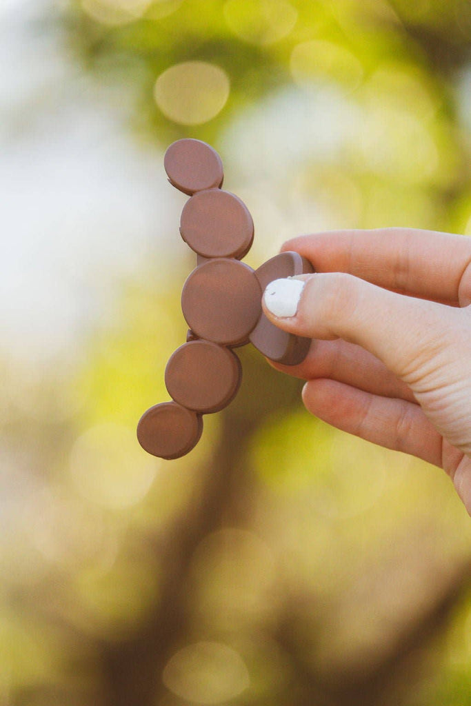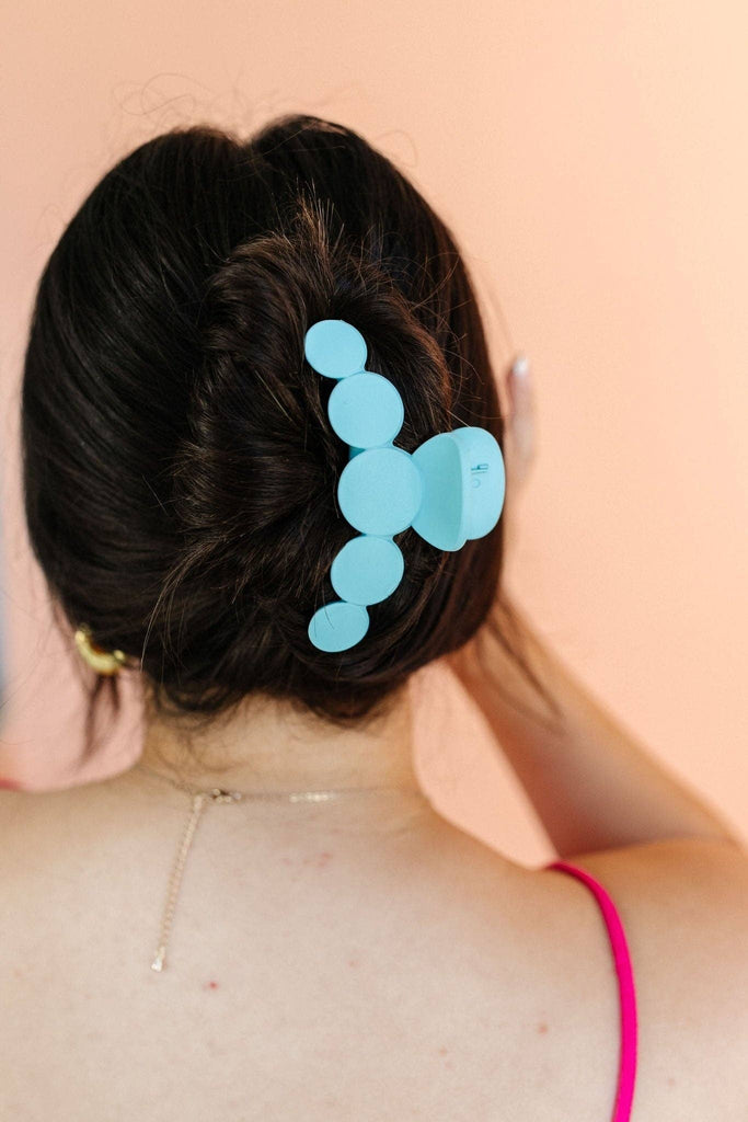 These claw clips are an adorable addition to any hairstyle. They are a large 4 inch claw clip, featuring five circle shapes on each side with a clean, matte finish. This clip is perfect for every hair type as it is strong, durable, and large in size!