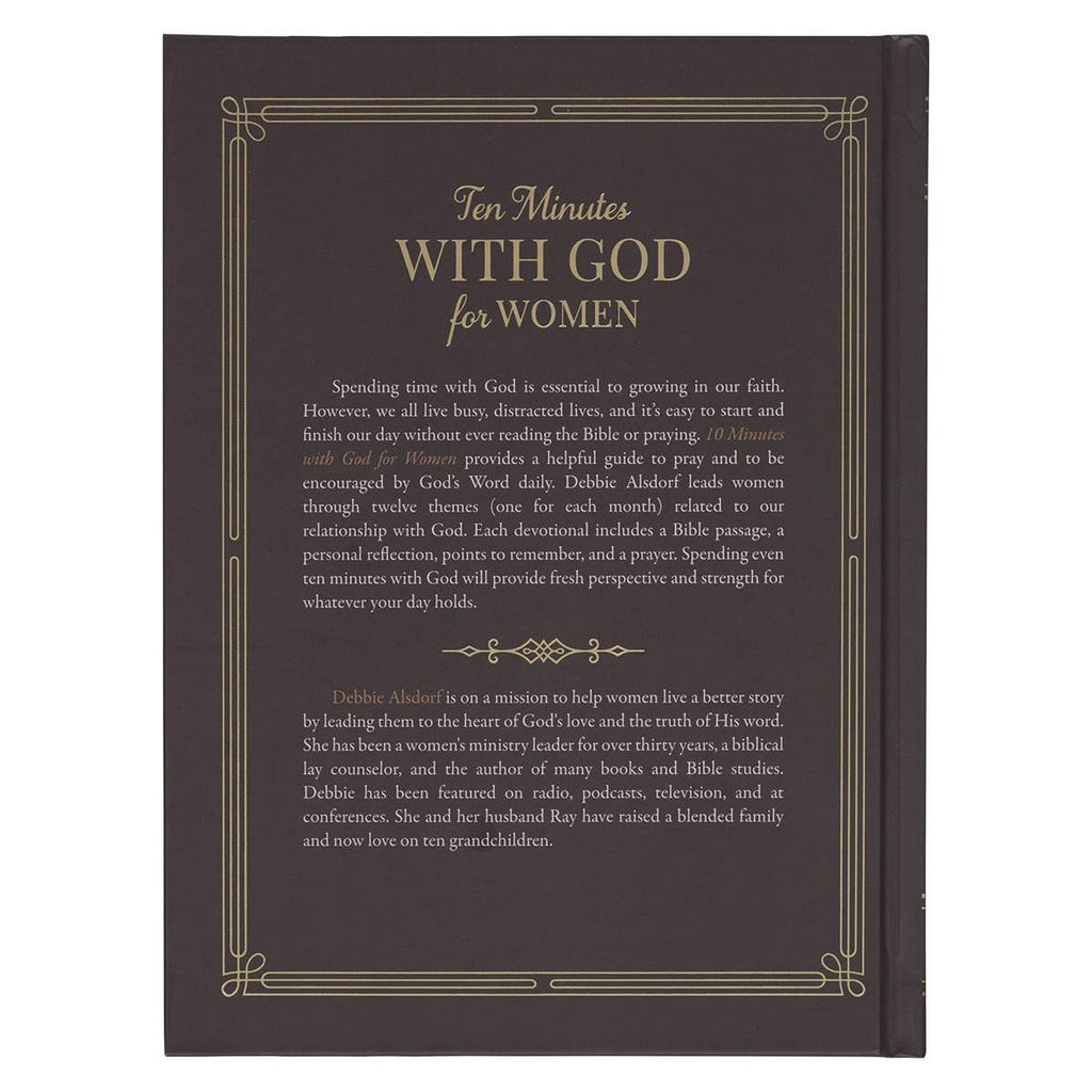 In the Ten Minutes with God for Women Hardcover Daily Devotional, you will discover that spending just 10 minutes a day in reflection and prayer is a great start to a relationship with God. This devotional is the antidote to a no-devotional life for procrastinators, those finding focus challenging, and the plain busy moms. This devotional offers flexibility and the chance to carve out some quiet time in the busiest of schedules.