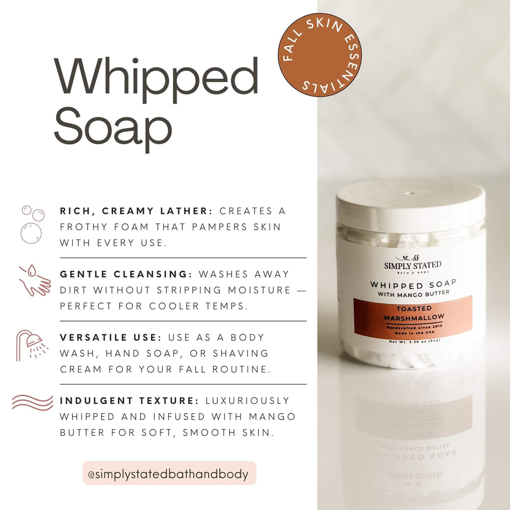 Back for another cozy season, our Fall Whipped Soap is a creamy, multitasking cleanser your customers will love. Made with nourishing mango butter and a soft, fluffy texture, it works as a body wash, hand soap, or shaving cream — all while delivering skin-softening hydration and warm seasonal scent.