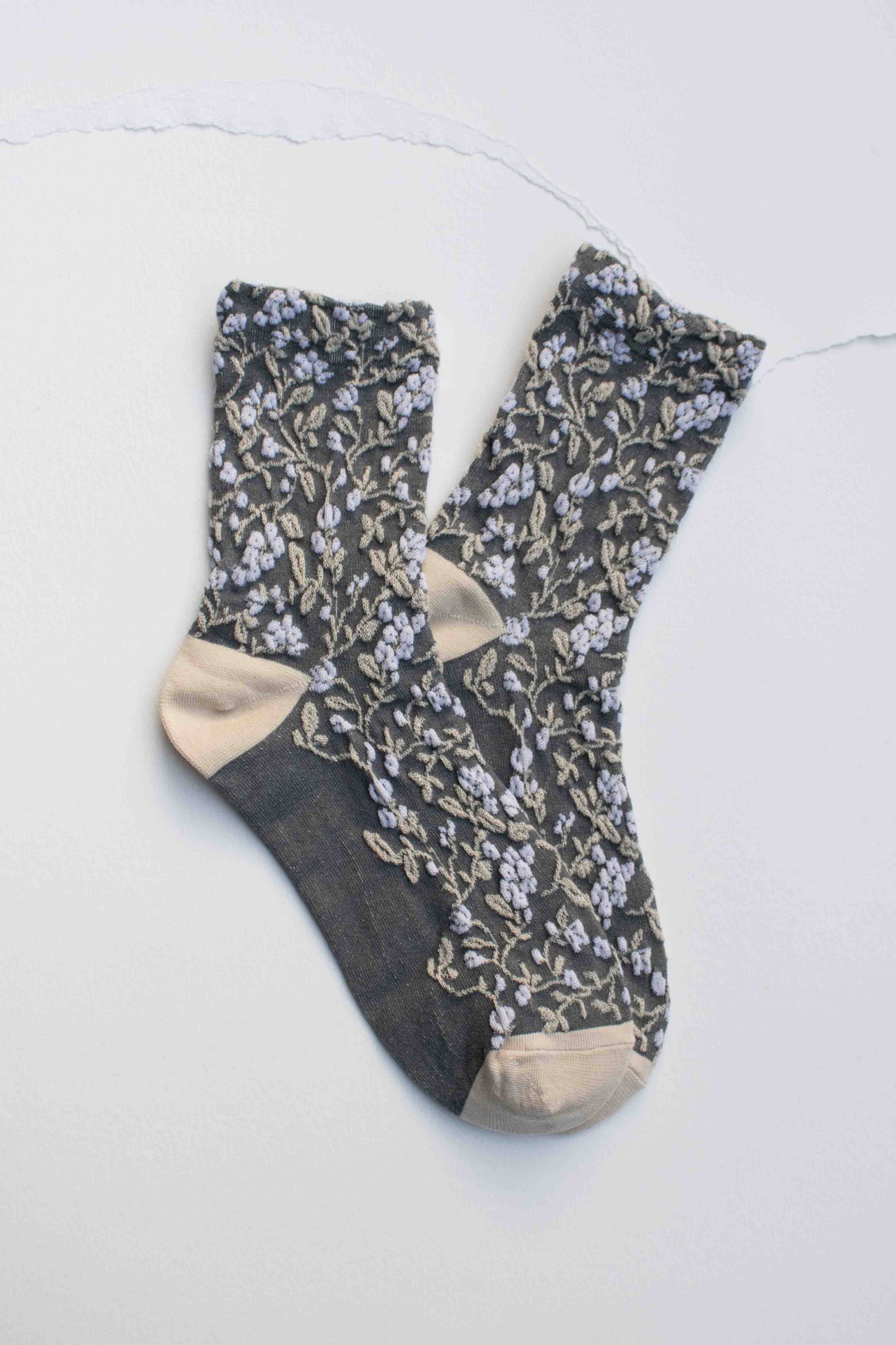 Tiepology - Floral Textured Socks: Grey