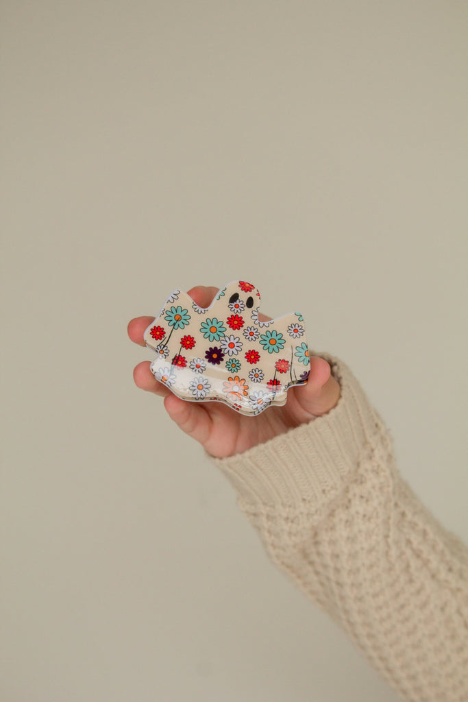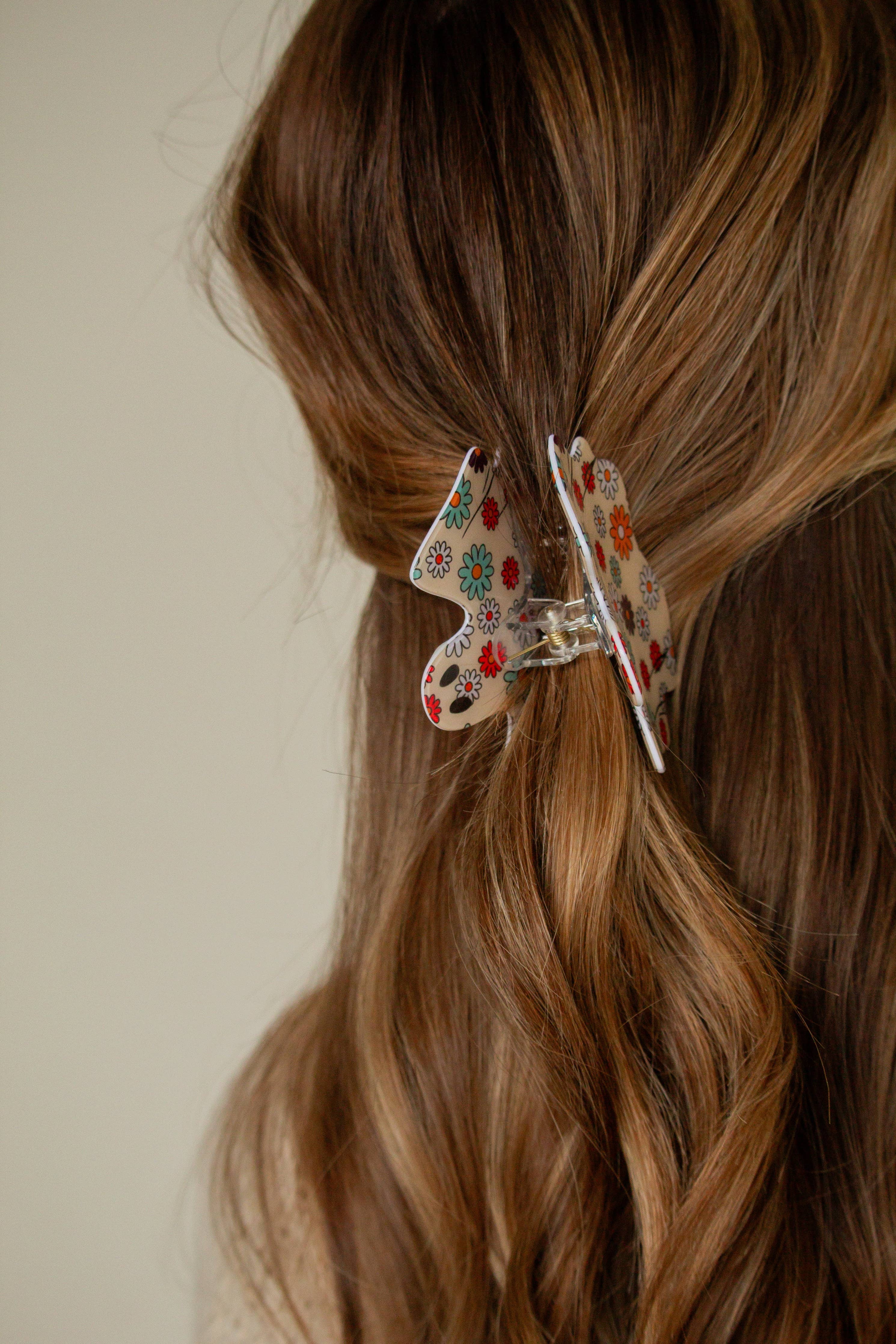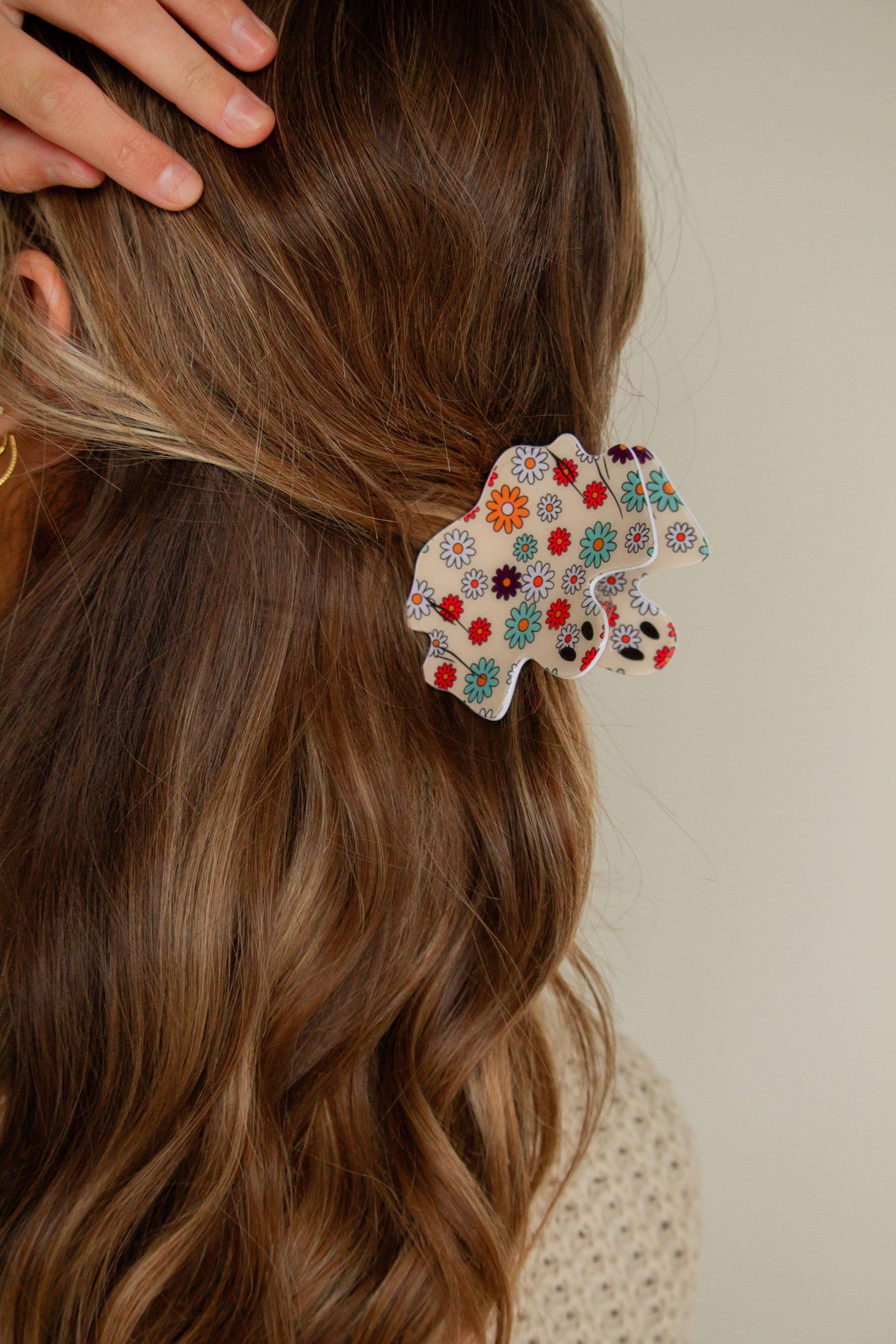 This unique & stunning claw clip is the cutest size, and is an absolute vibe for this time of year! The best way to elevate your updo for the day. This is a smaller size claw clip measuring at 2.5 inches.