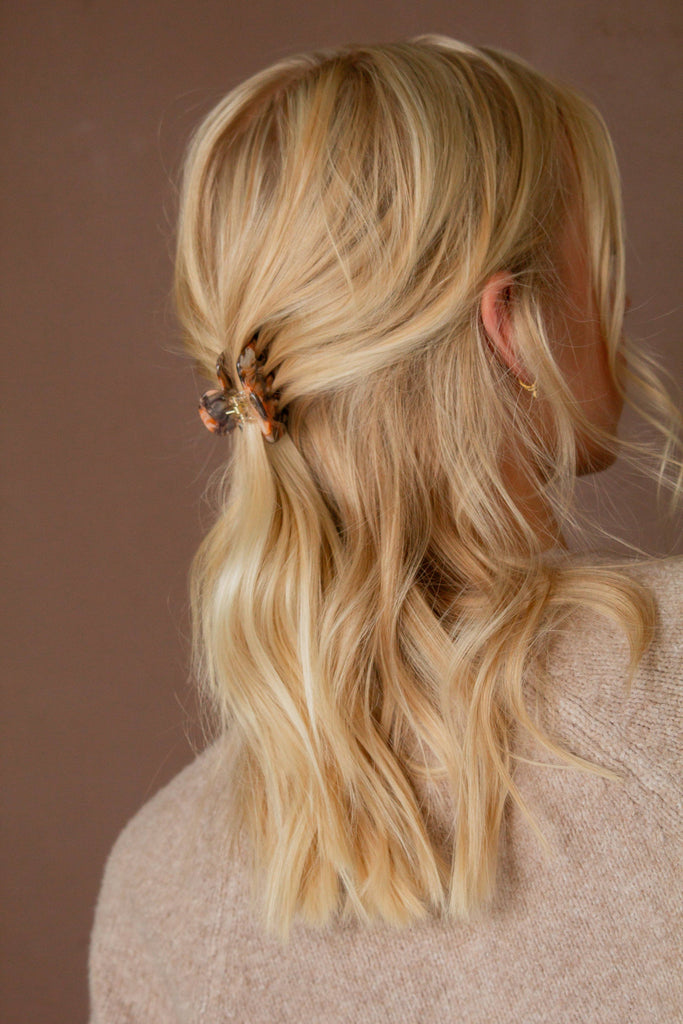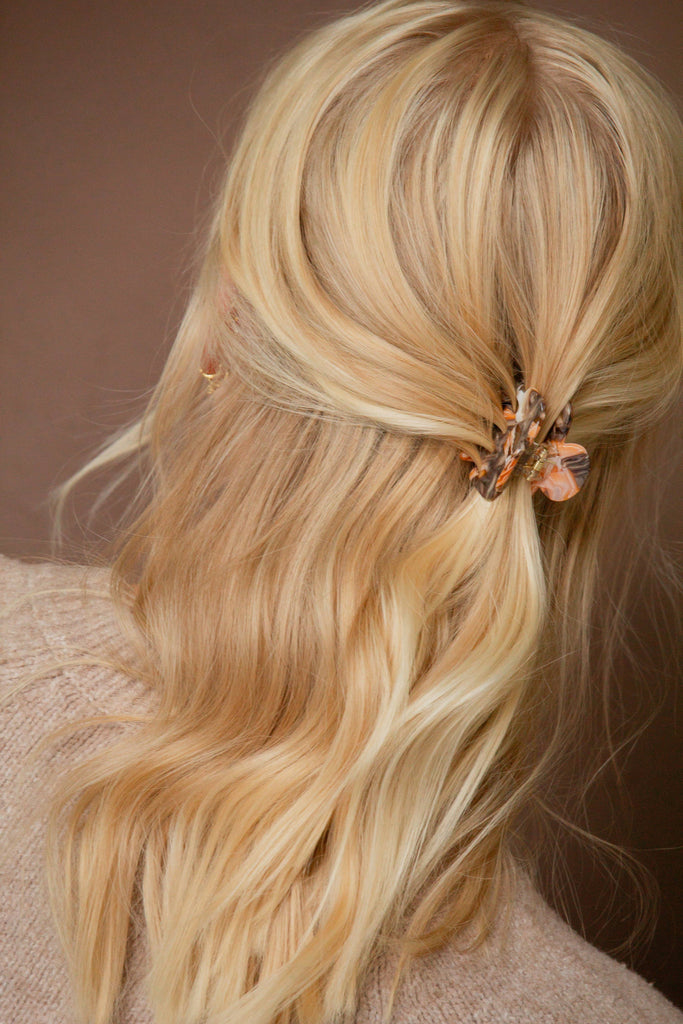 This unique & stunning claw clip is the cutest size, and is the absolute perfect color combo for this time of year! The best way to elevate your updo for the day. This is a mini size claw clip measuring at 1.5 inches.