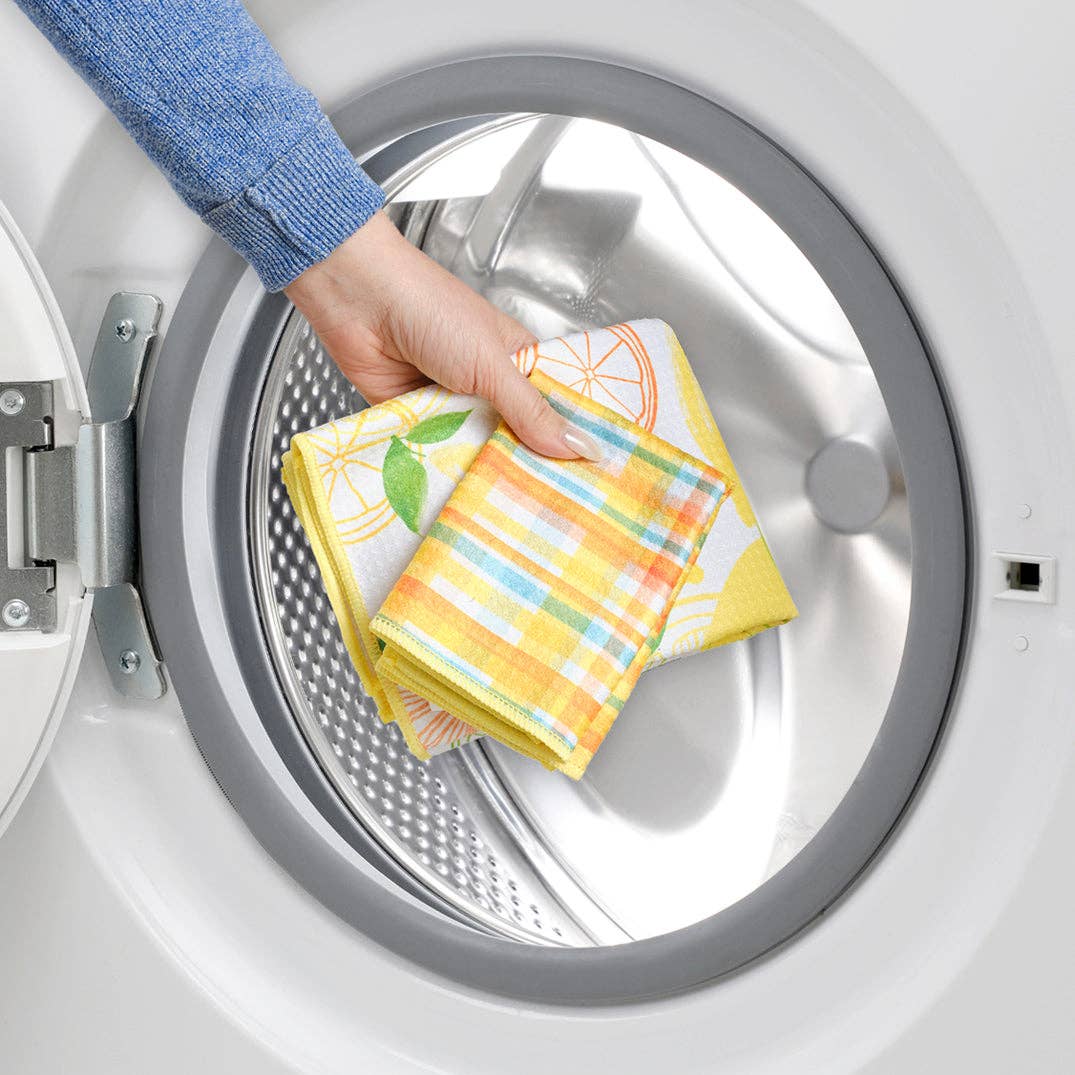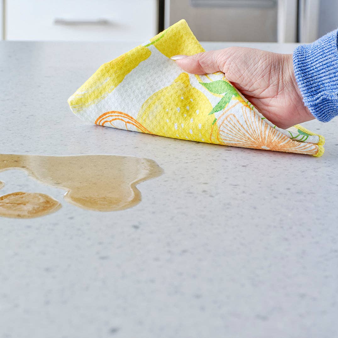 Transform your cleaning routine into something you'll actually enjoy! This vibrant Lemon Plaid Microfiber Towel Set brings style and serious performance to every task. Four versatile towels in two sizes tackle everything from delicate glassware to stubborn grime without streaks or scratches. The waffle weave texture powers through dirt while absorbing three times more than cotton, drying five times faster for maximum convenience. Featuring eye-catching leaf and retro geometric patterns, these eco-conscious helpers are crafted from recycled plastic bottles. Make cleaning satisfying, sustainable, and stylish all at once.