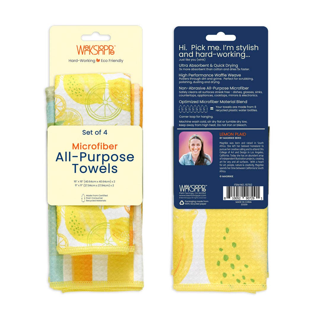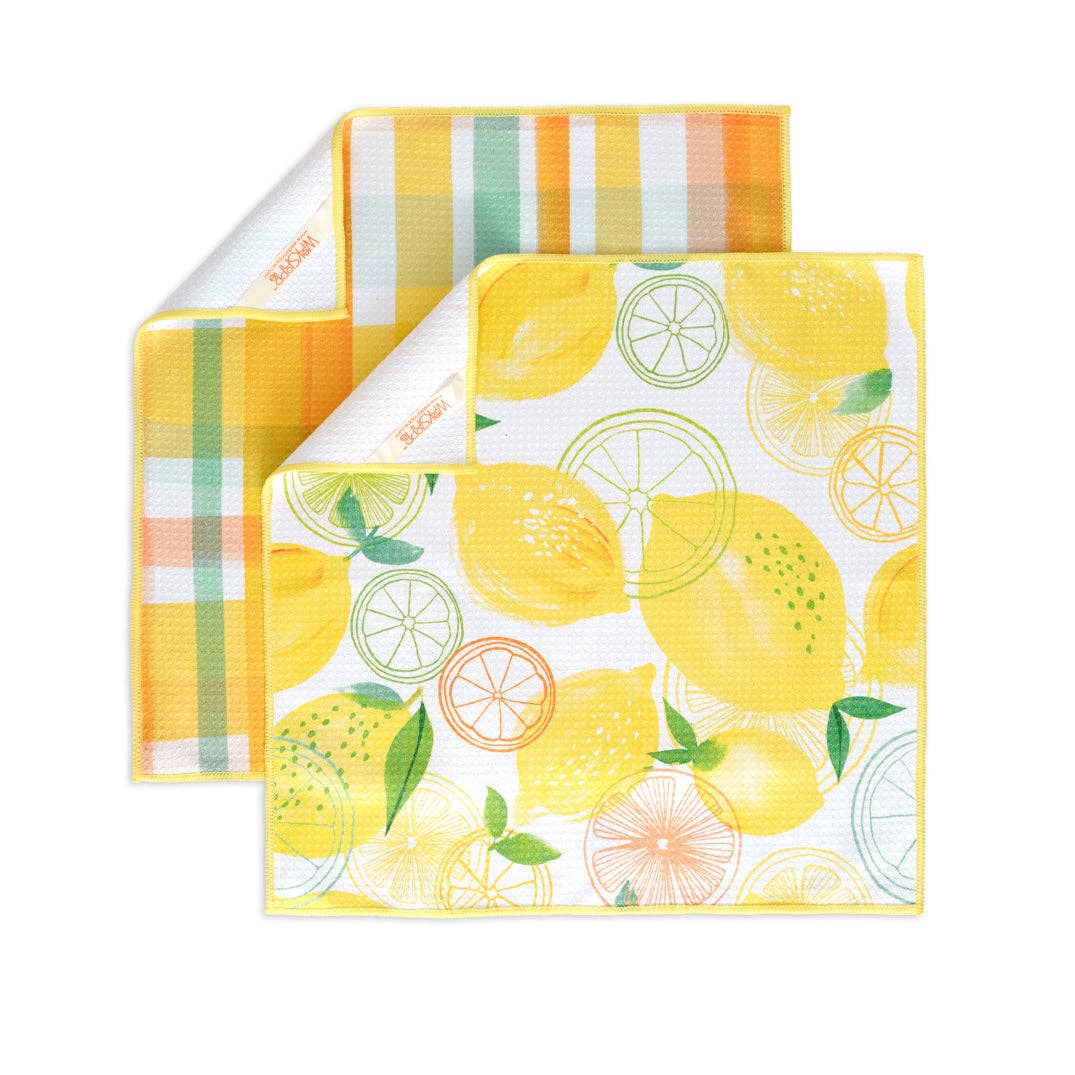Lemon Plaid Microfiber Towel Set, All Surface Cleaning Cloth