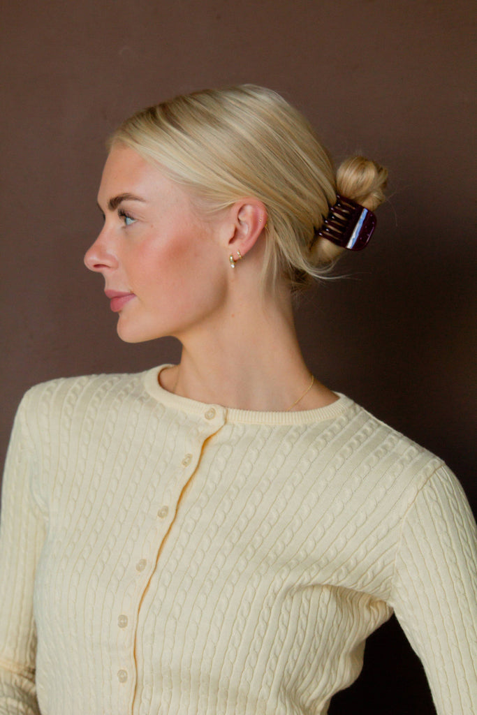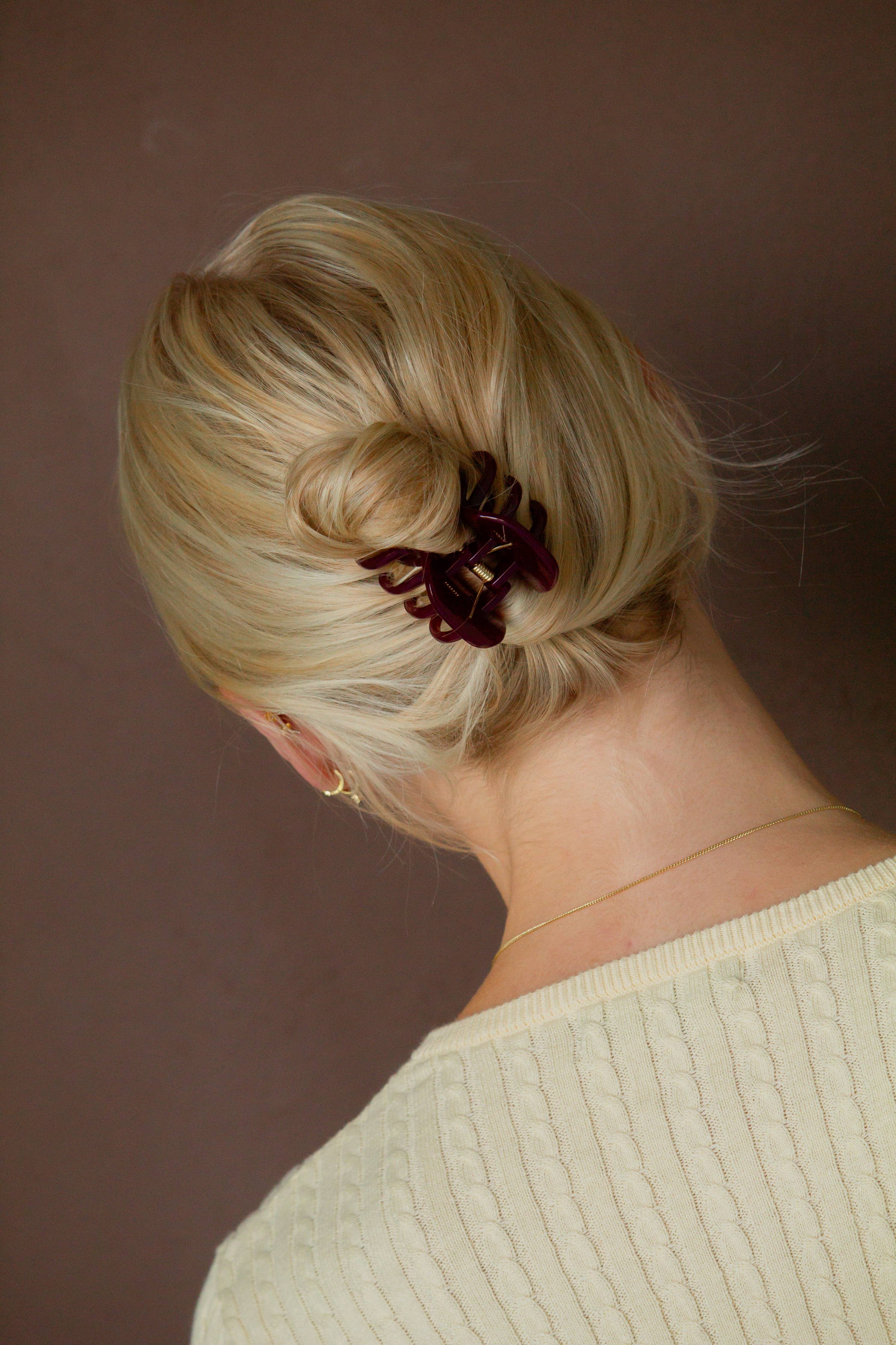 This unique & stunning claw clip is the cutest size, and is the absolute perfect deep red color for this time of year! The best way to elevate your updo for the day. This is a small size claw clip measuring at 2 inches.