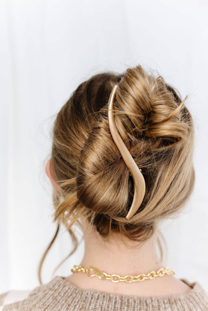 Who has the time to do fancy hairstyles?? Not me!!!! This new alligator claw clip is perfect for an effortless easy hairstyle. It's unique shape and design will have everyone asking you about it! This measure 4.5 inches and comes in a metal gold color