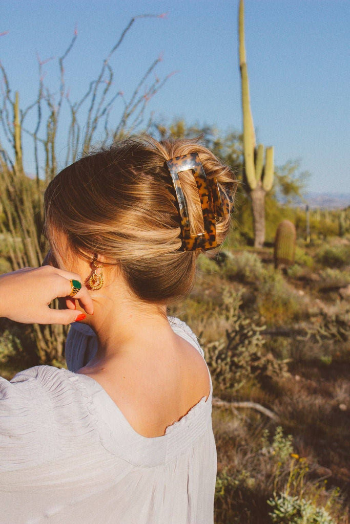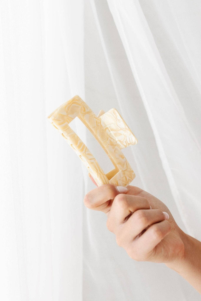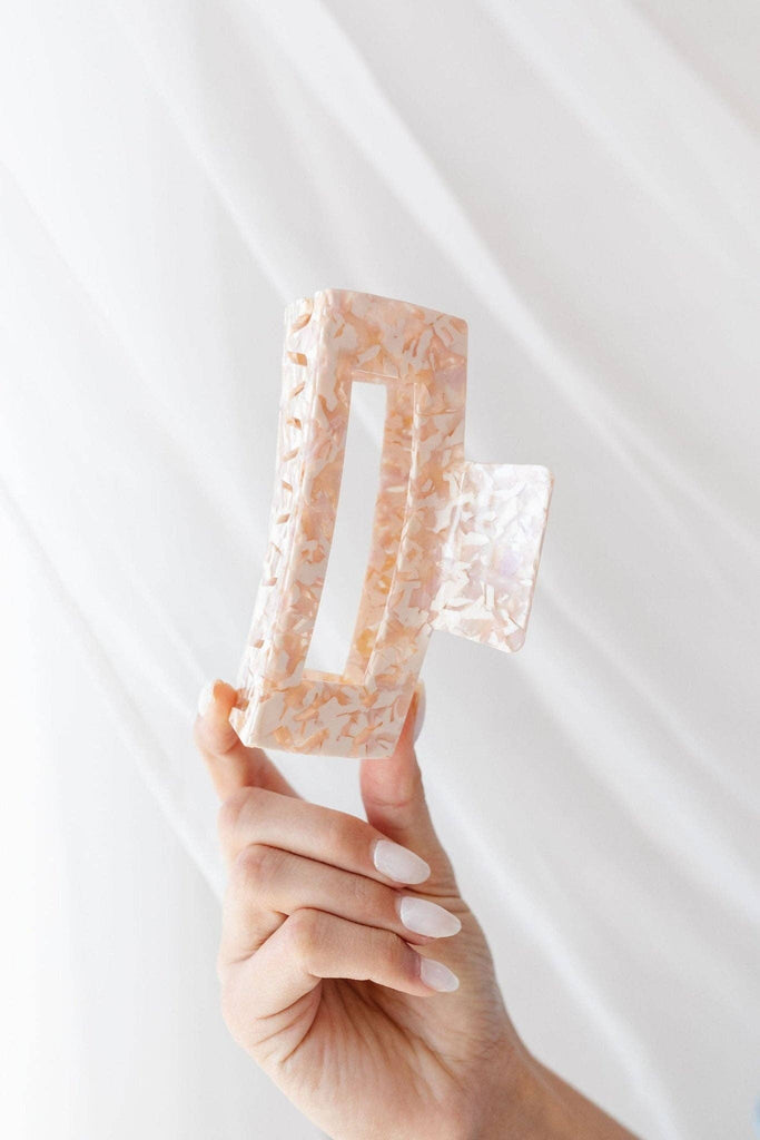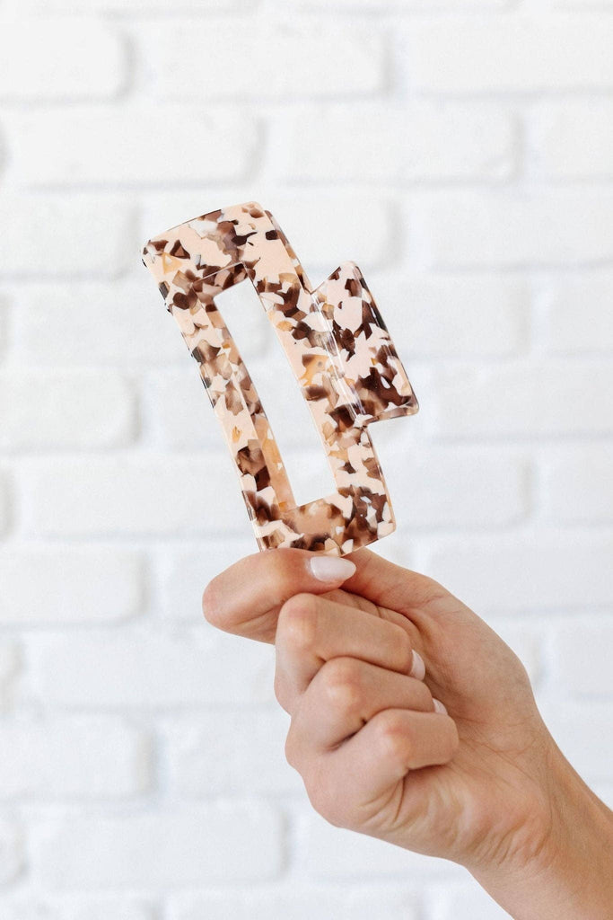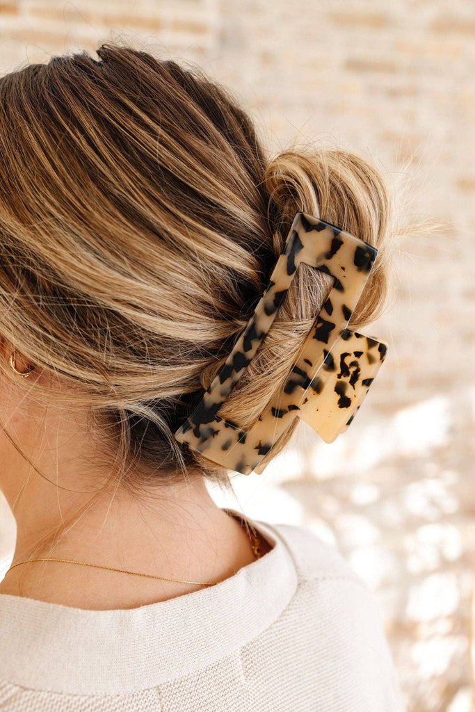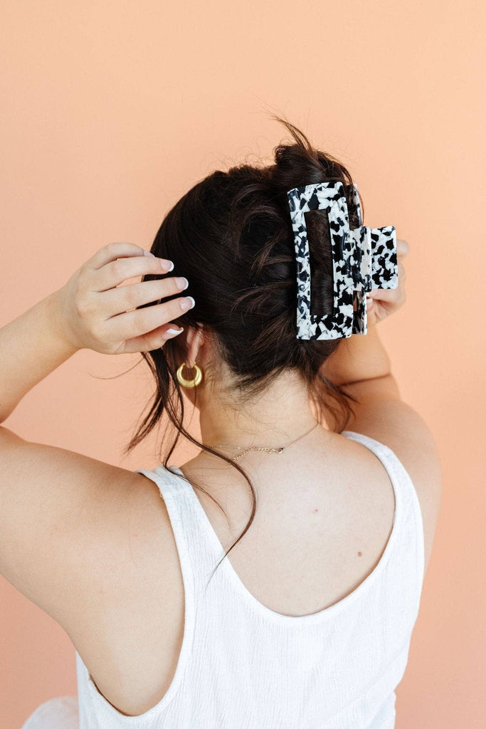 These XL rectangle claw clips are here to make a statement! They are 5 inches long and perfect for a hairdo that will last all day long. They come in five different colors; black/white marble, cream marble, pink marble, and peach/brown marble! These are some of our best clips for thick hair!