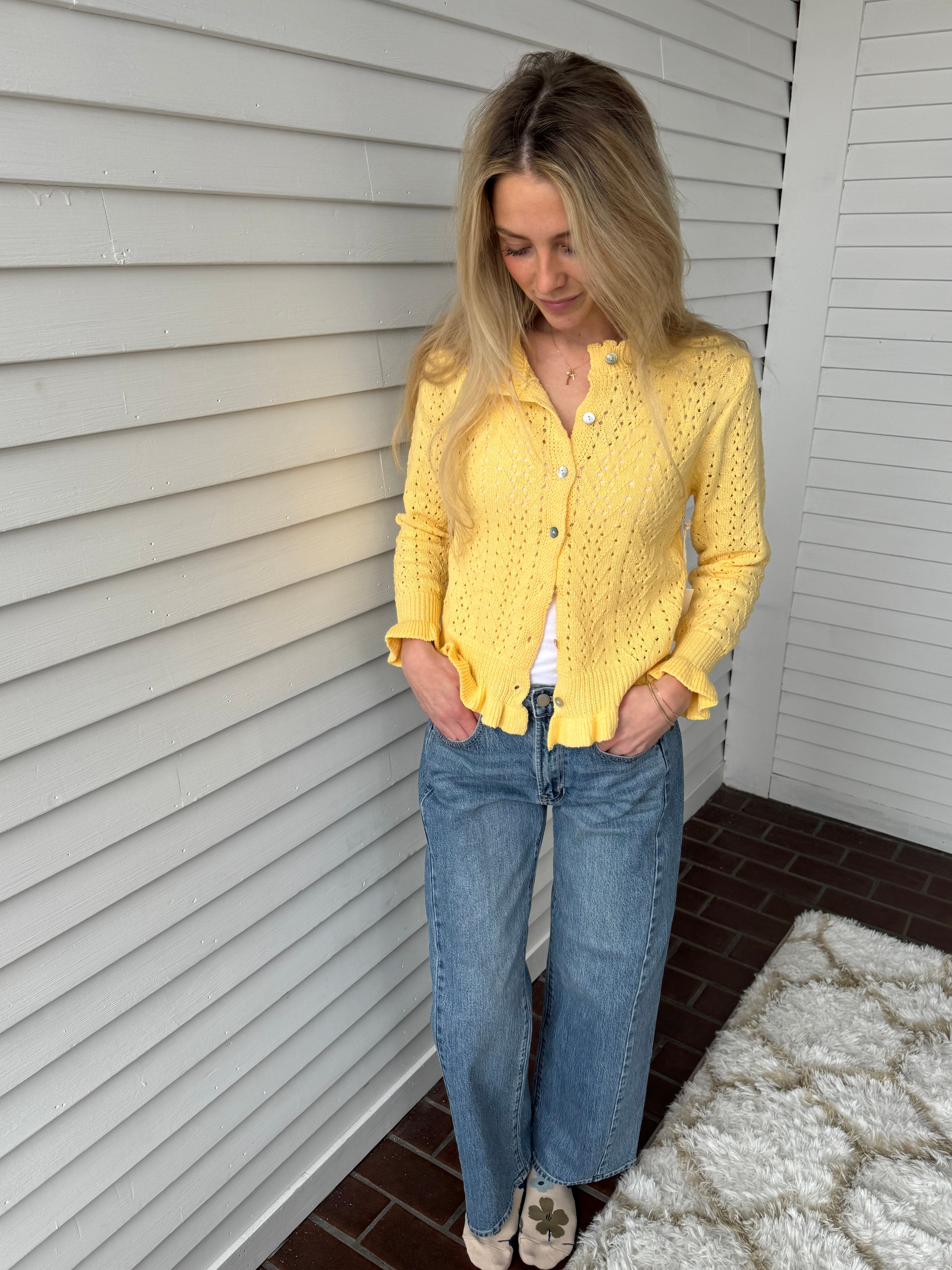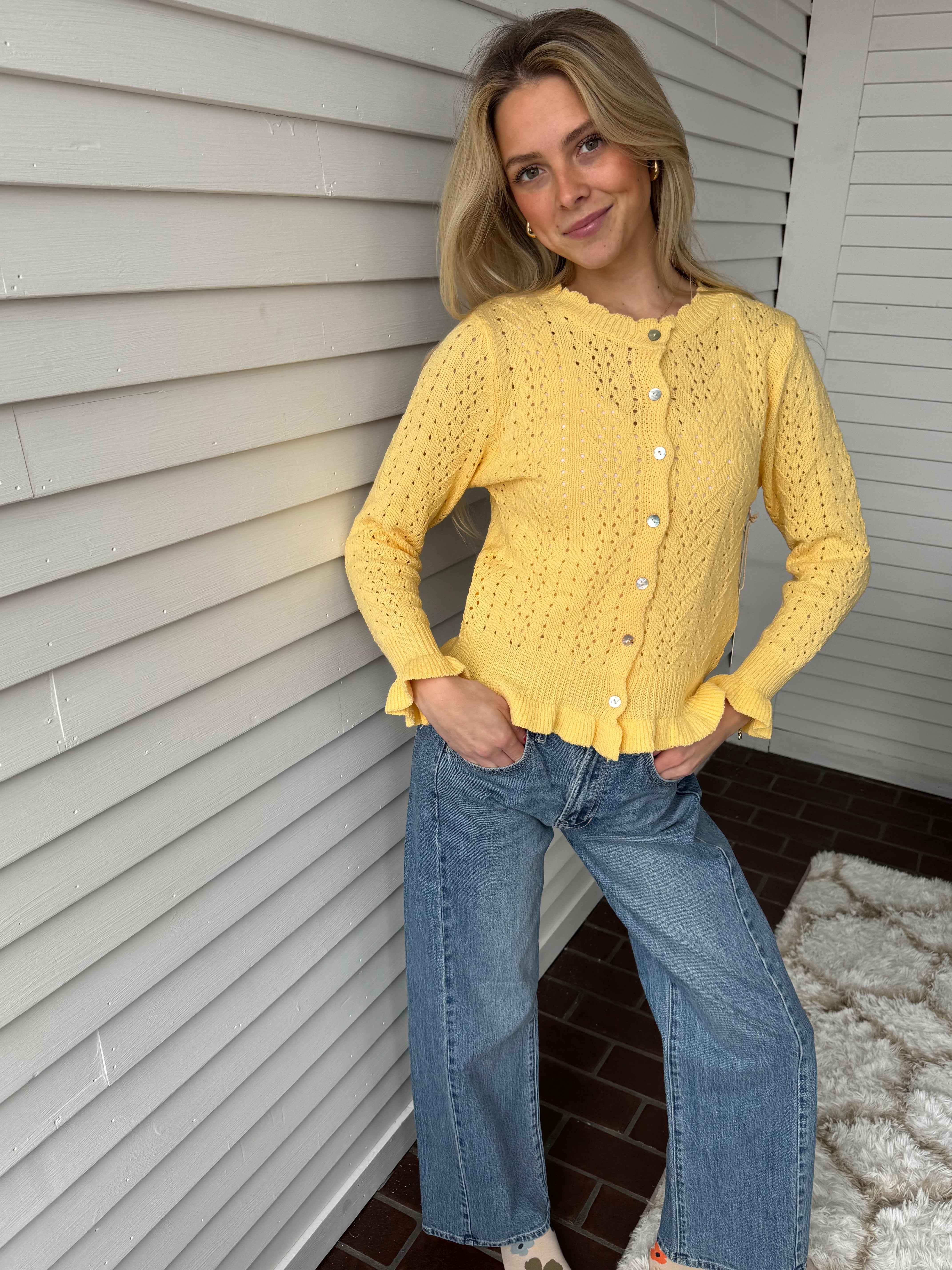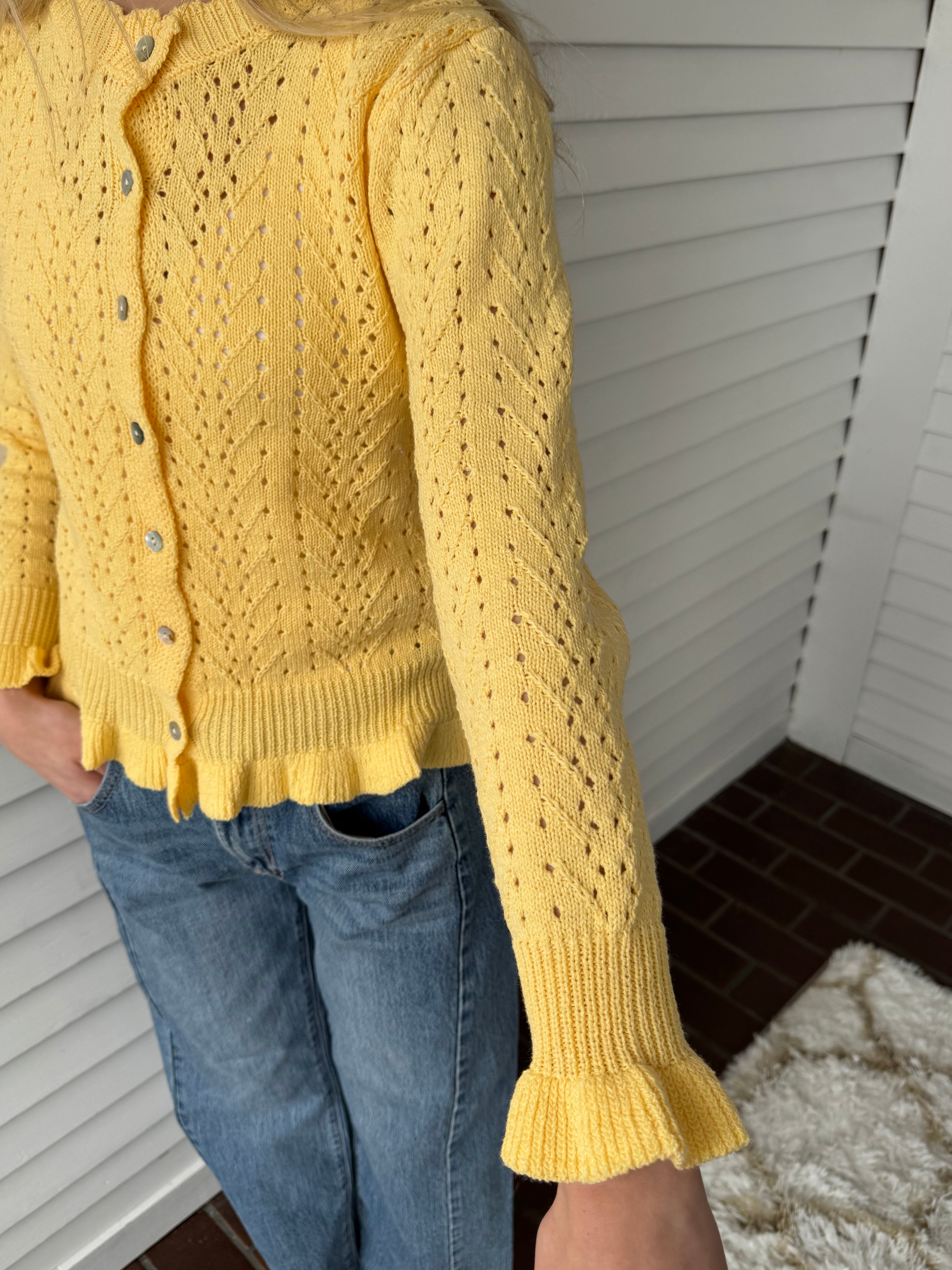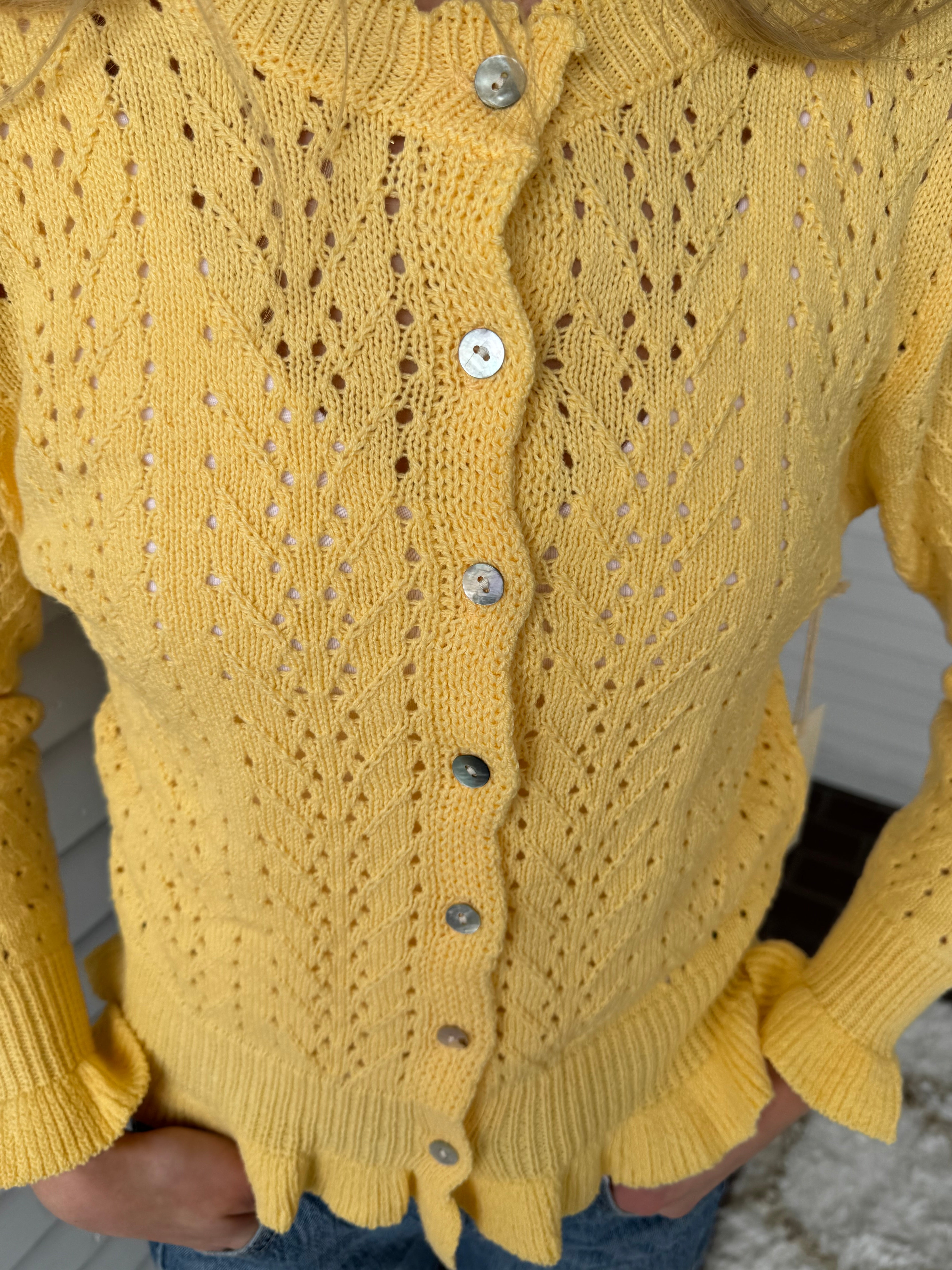 Upgrade your corporate wardrobe with this refined cardigan, crafted for discerning professionals who value both sophistication and comfort. The delicate openwork knit structure delivers a polished appearance, while the subtle lemon yellow shade adds a contemporary yet approachable edge to your business attire.