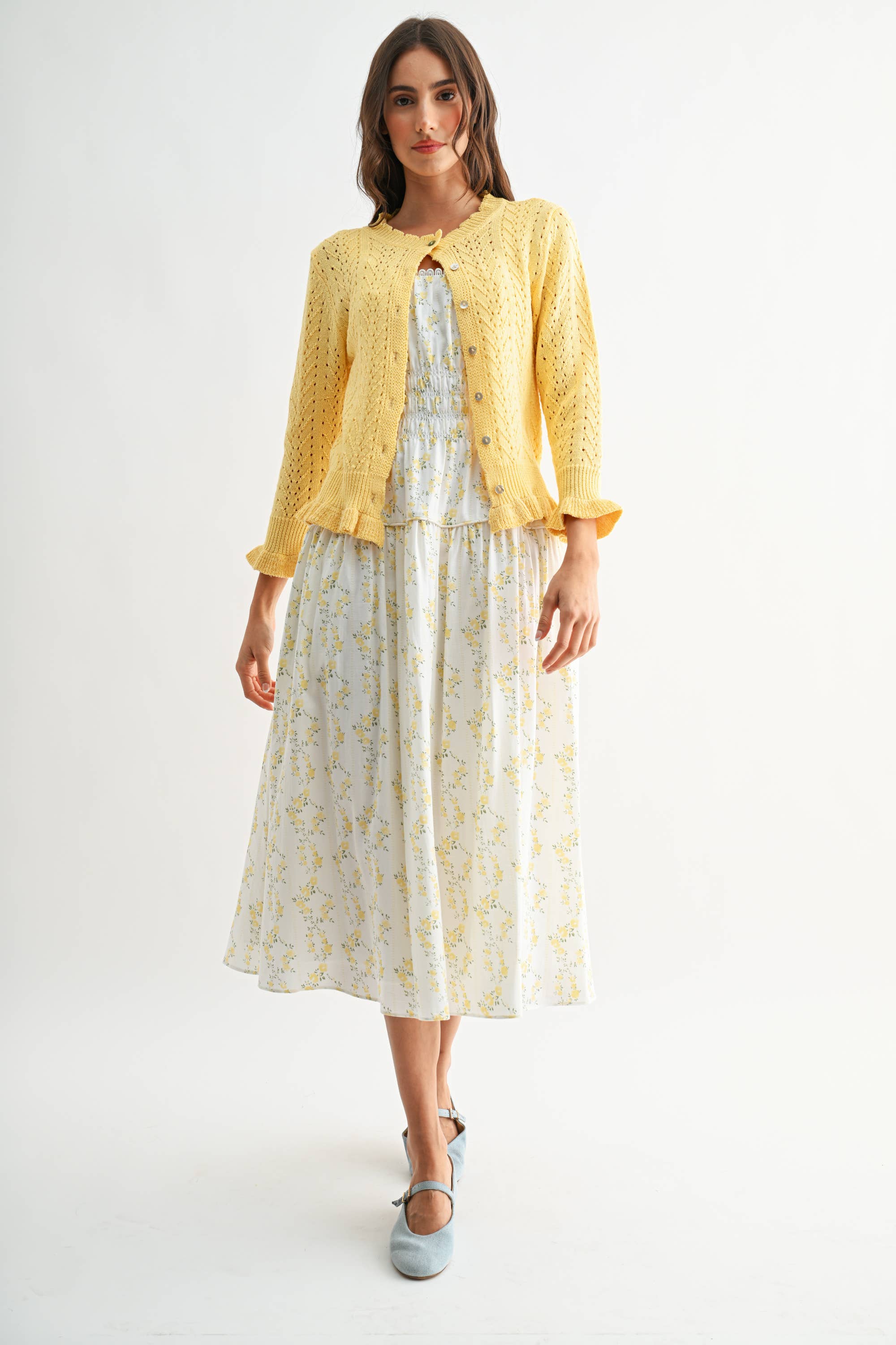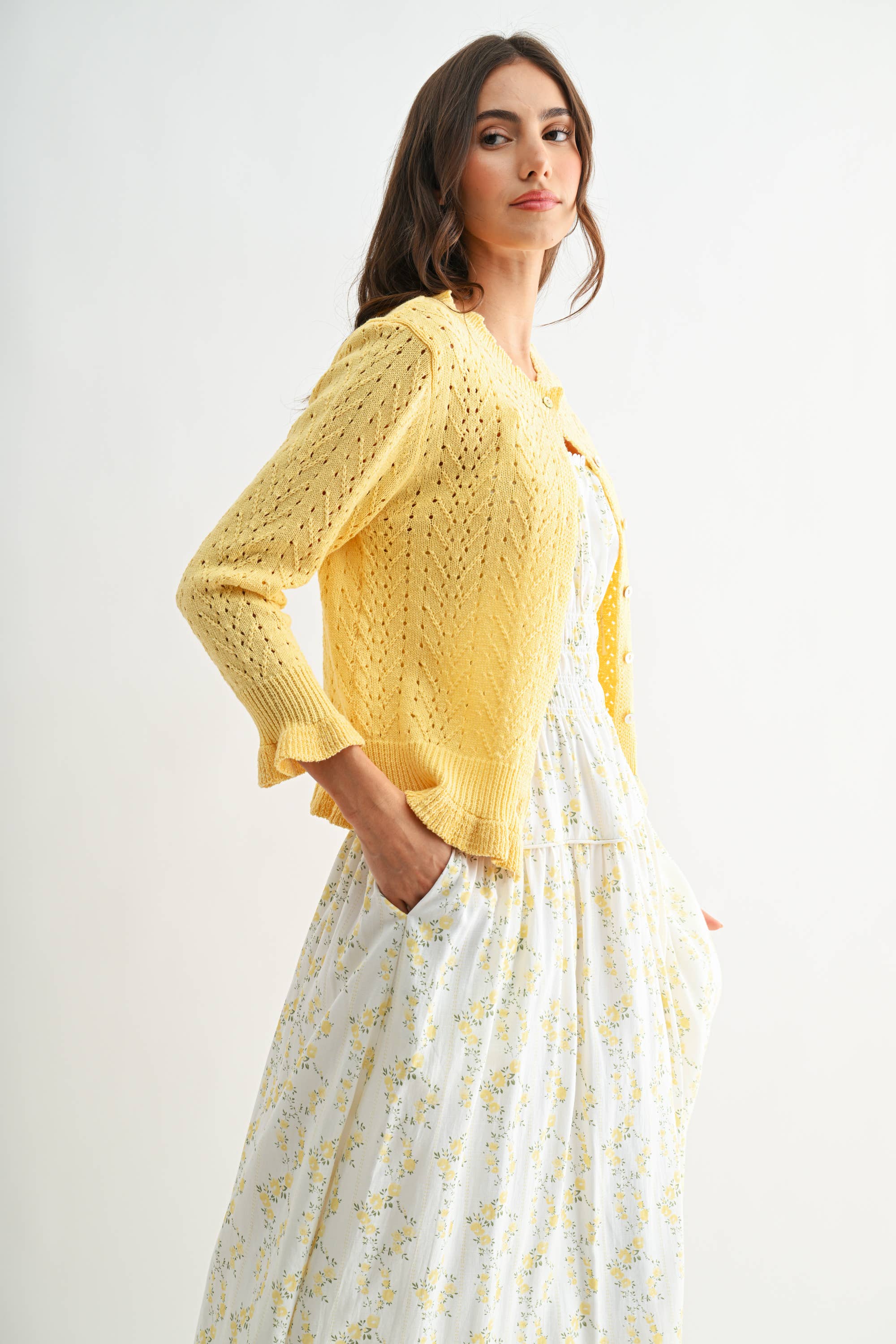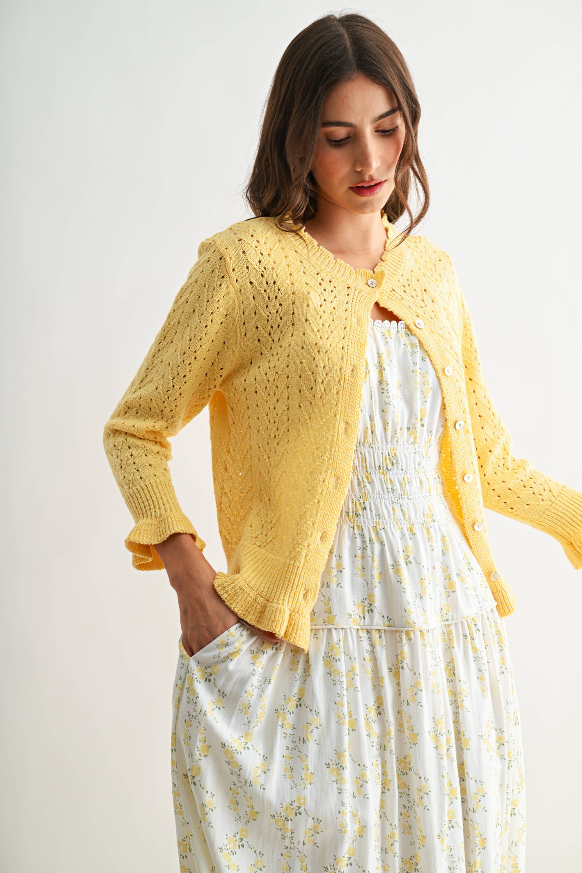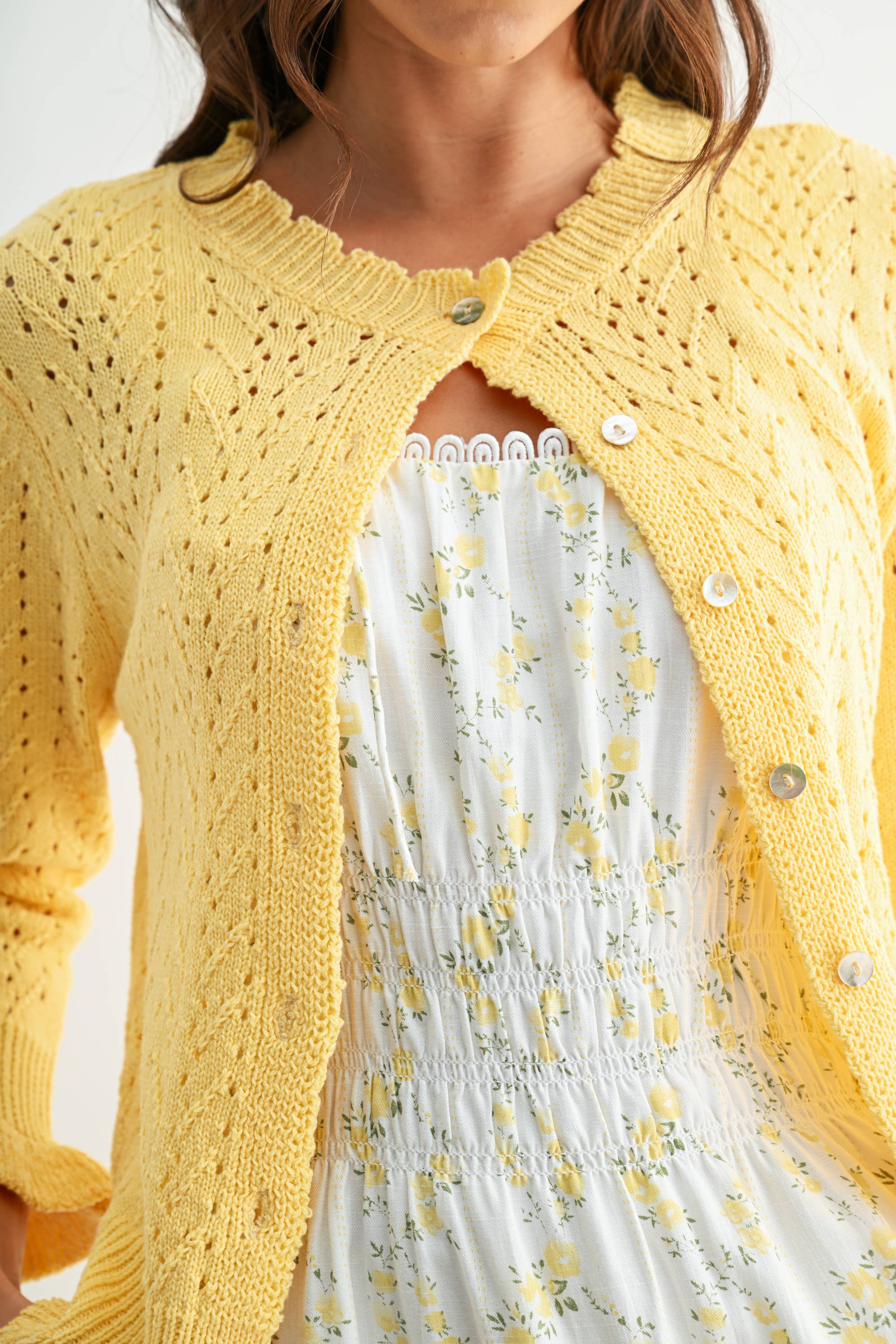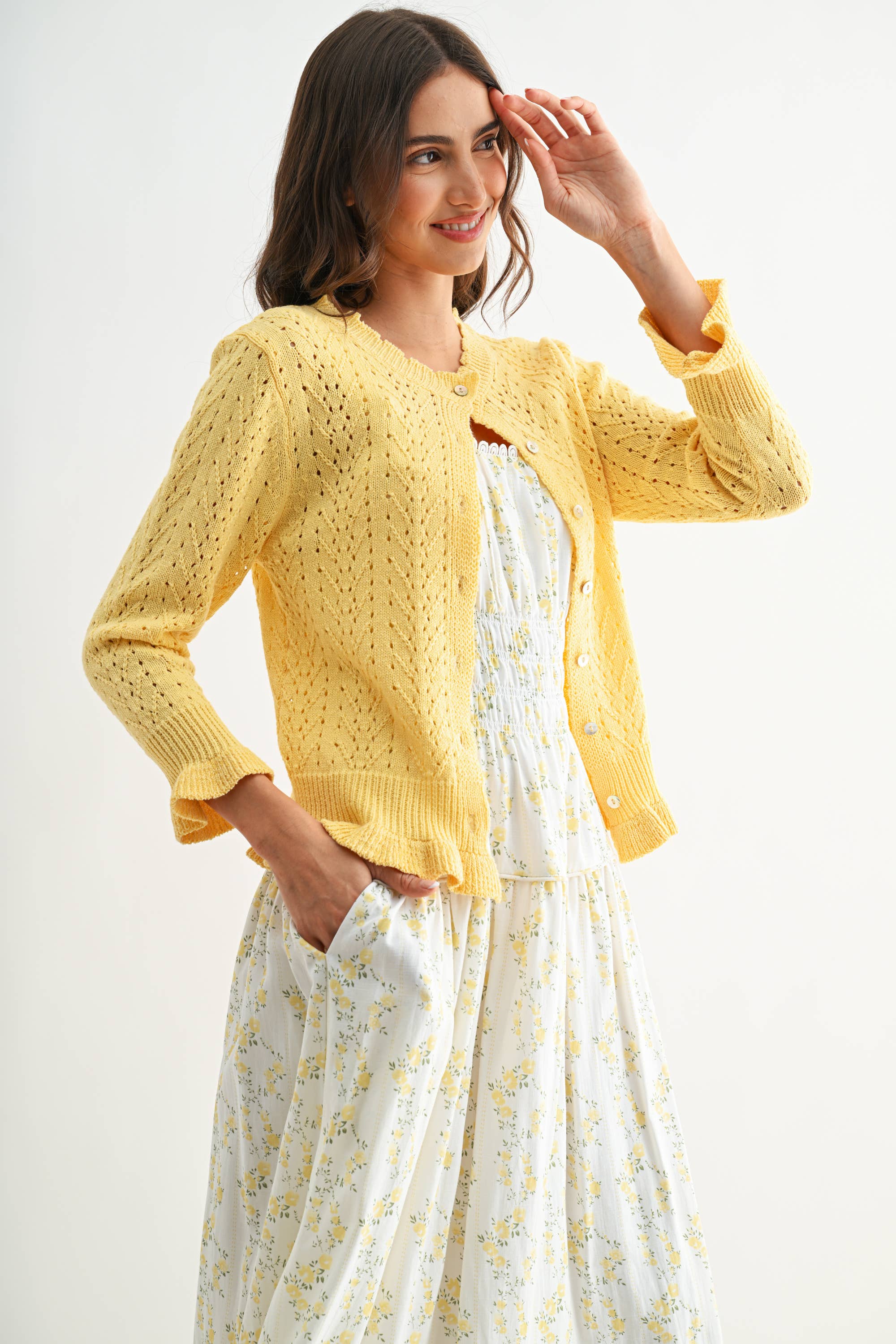 Upgrade your corporate wardrobe with this refined cardigan, crafted for discerning professionals who value both sophistication and comfort. The delicate openwork knit structure delivers a polished appearance, while the subtle lemon yellow shade adds a contemporary yet approachable edge to your business attire.