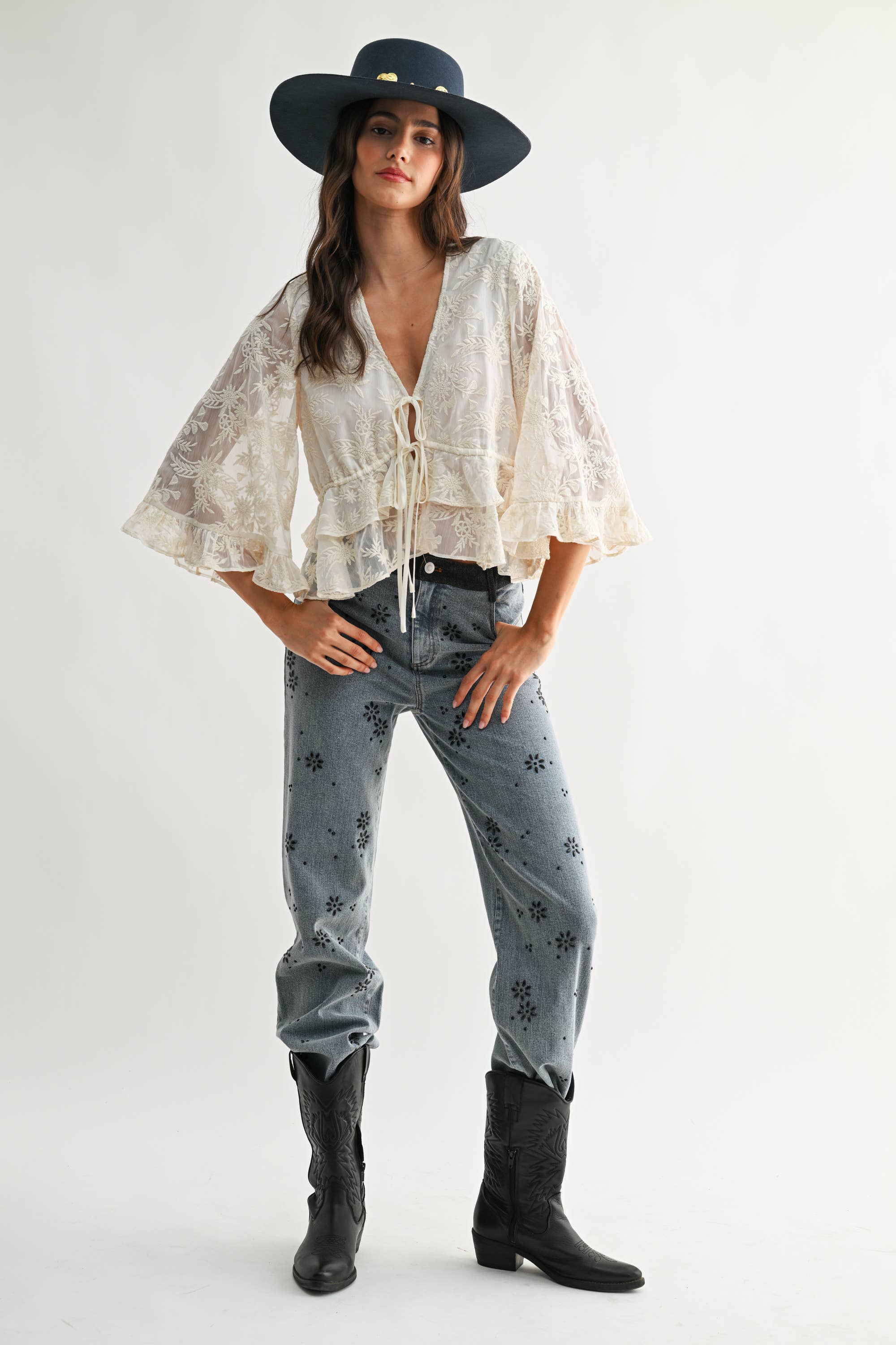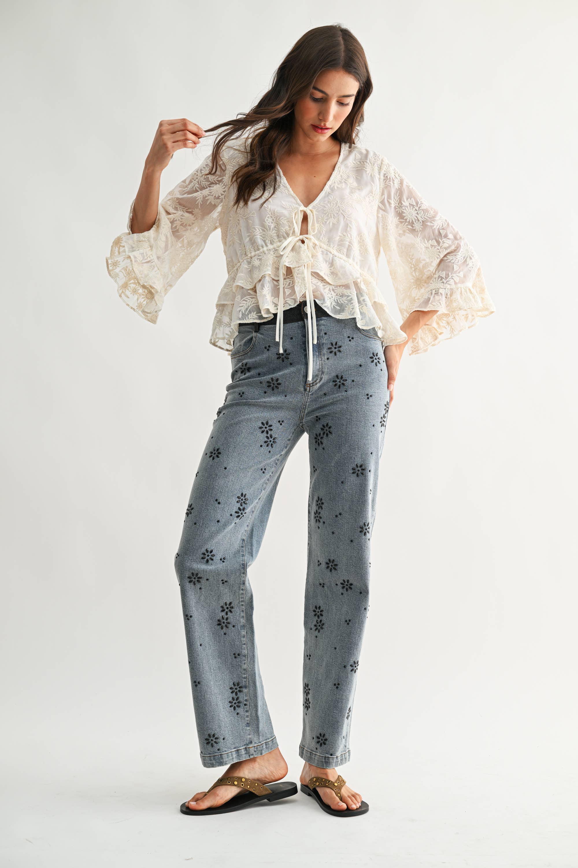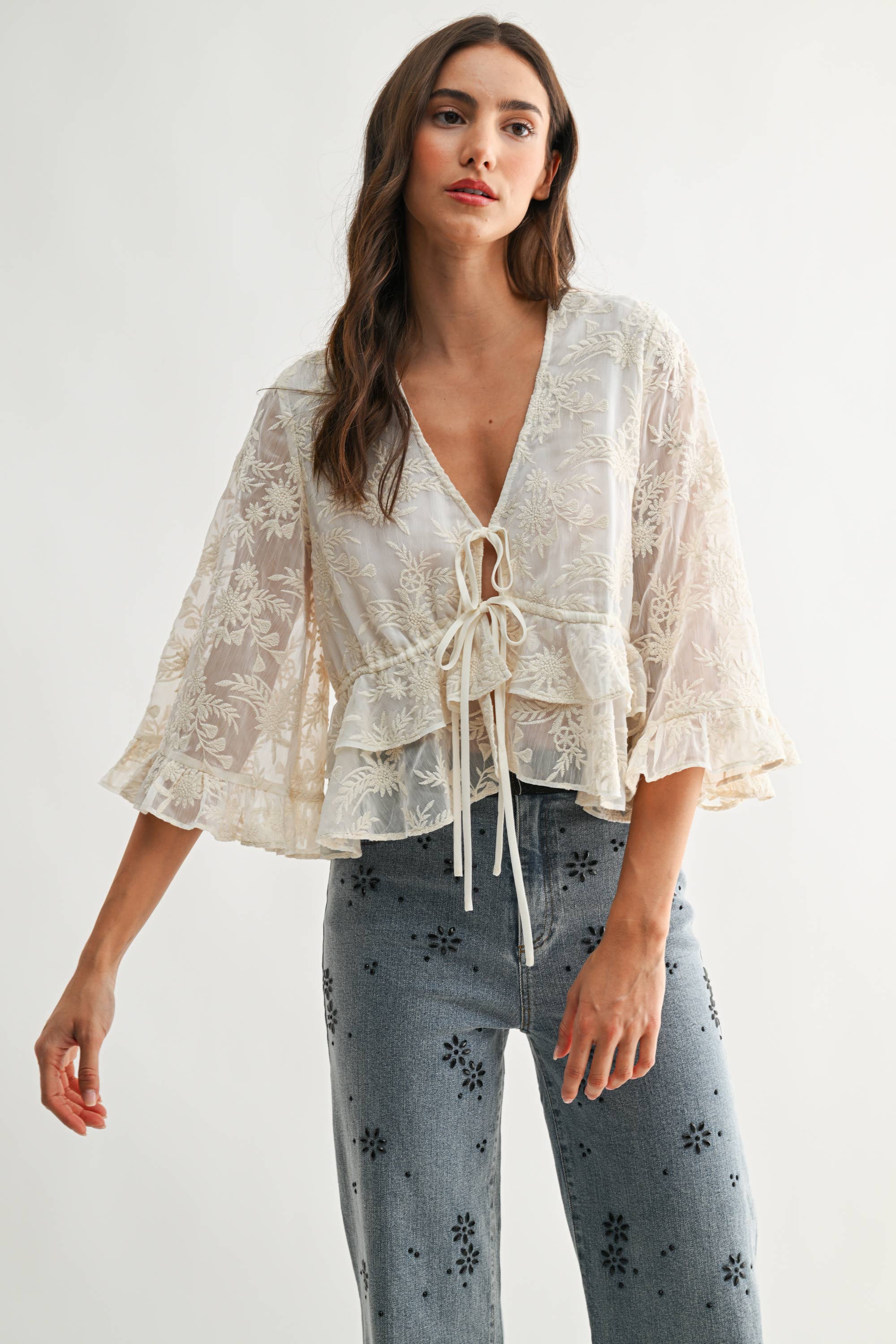 Embrace effortless style and a touch of romance with this dreamy sheer embroidered blouse! Perfect for those who love a bit of vintage flair mixed with everyday comfort, this top instantly brightens up any outfit. The delicate cream lace embroidery gives it a truly boho-chic vibe, while the airy, lightweight fabric feels soft and floaty against your skin.