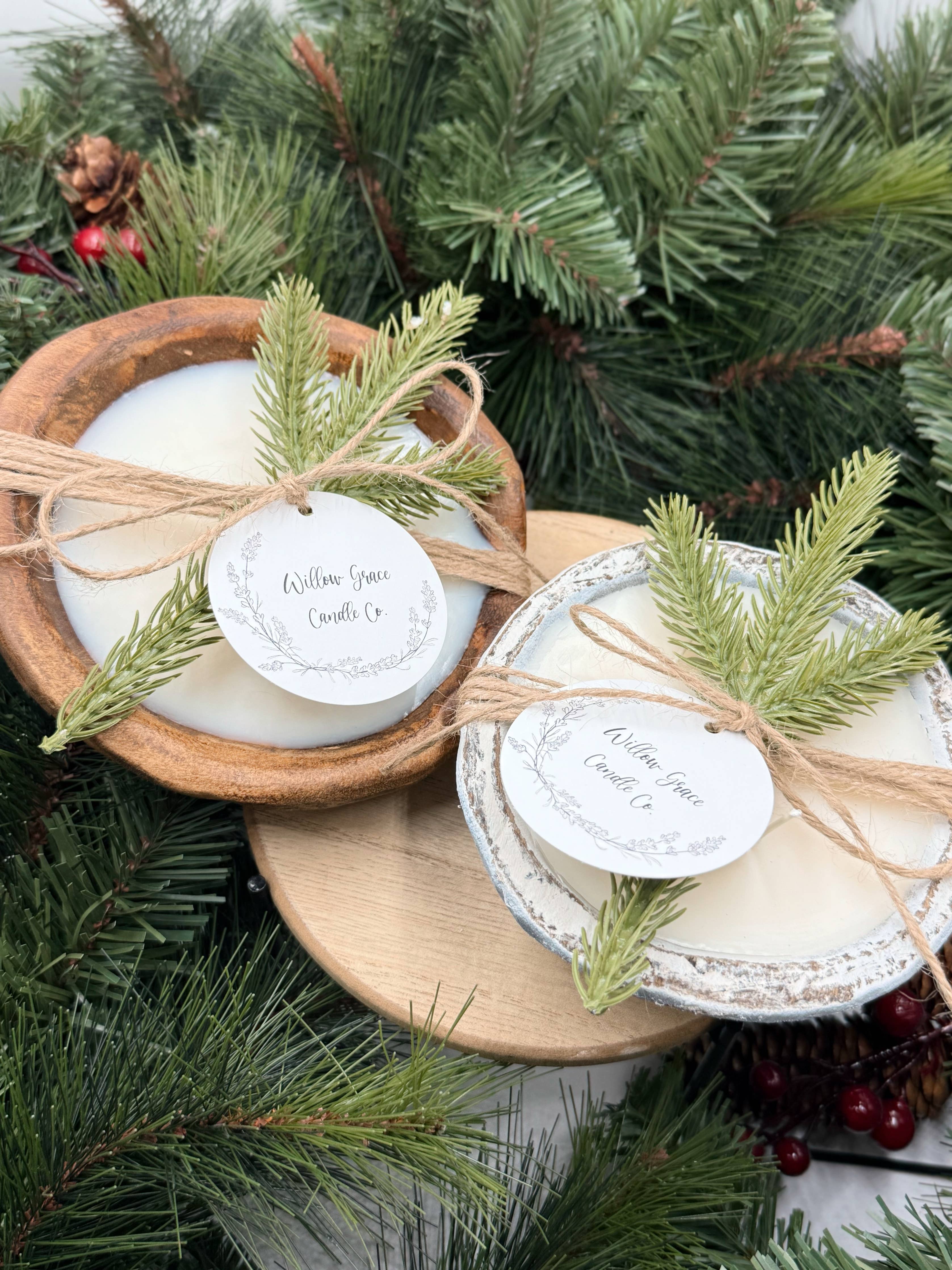 *Holiday* Mini Round Dough Candle: White Wash / Frasier Fir