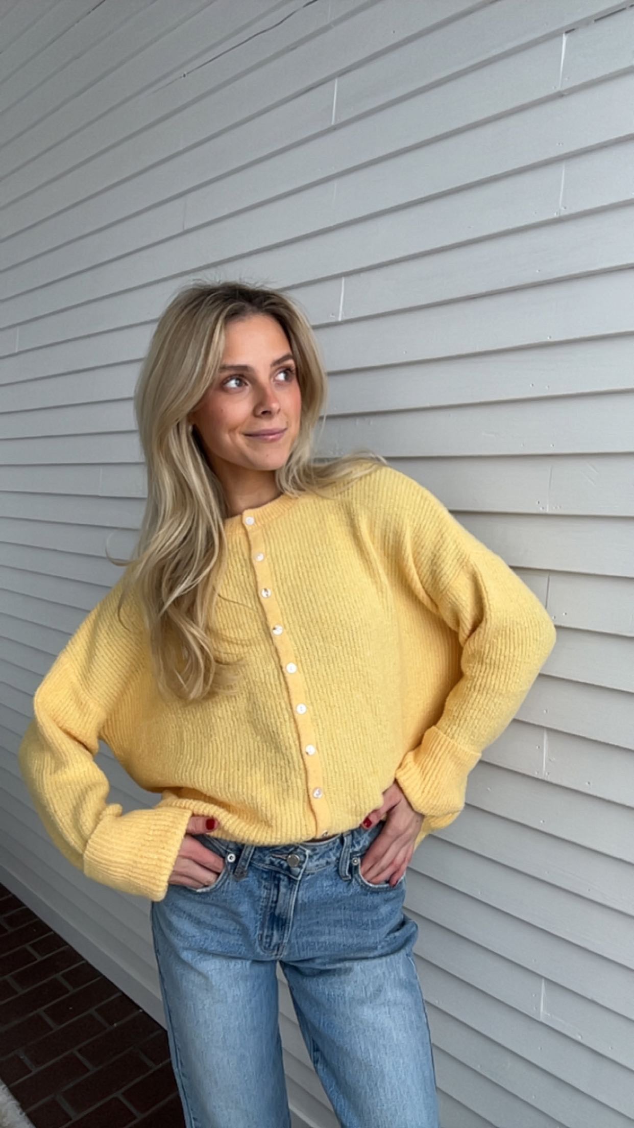 Welcome the warm embrace of Trista's Cardigan, a delightful addition to your wardrobe. This buttery yellow cardigan is as cozy as it is stylish, perfect for layering on those breezy days. Whether you're heading to a brunch with friends or a casual day at the office, its soft fabric and charming hue will keep you feeling comfortable and chic. Pair it with your favorite jeans or a flowy skirt for an effortlessly elegant look. Discover the joy of wearing Trista's Cardigan and let its sunny vibes brighten up your day!