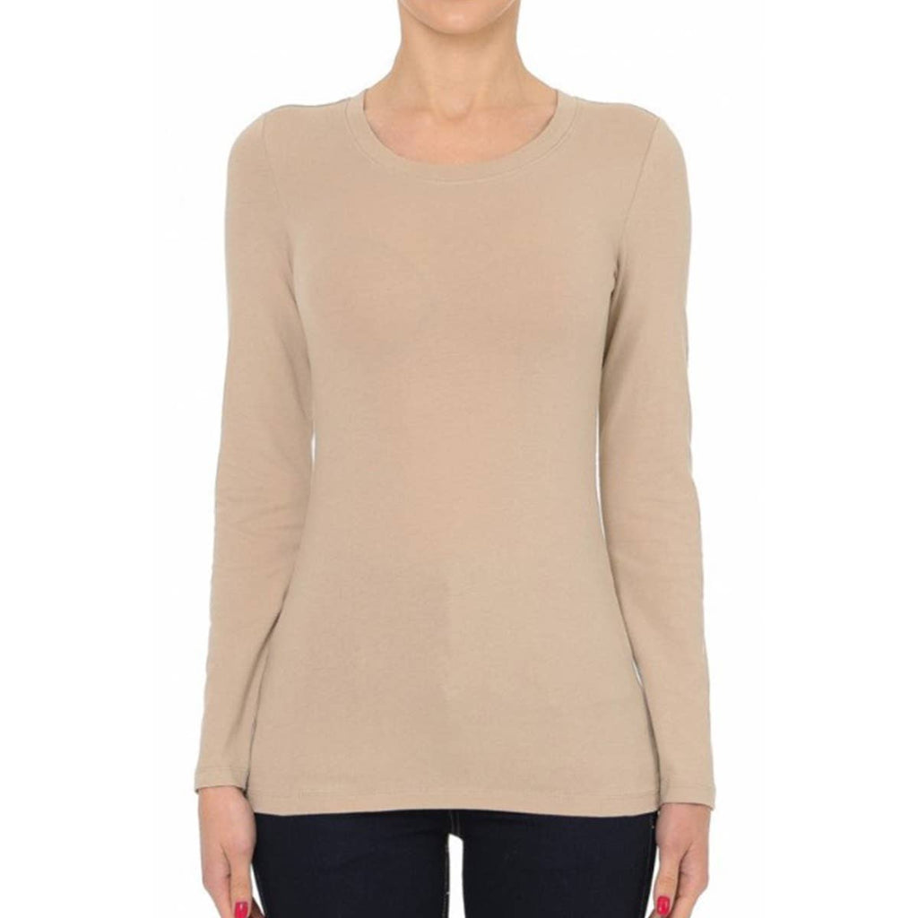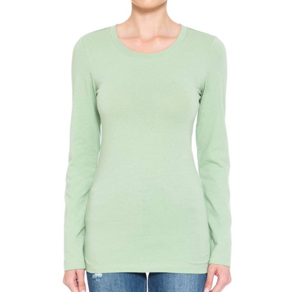 Round Neck Long Sleeve Basic Top 95% COTTON, 5% SPANDEX