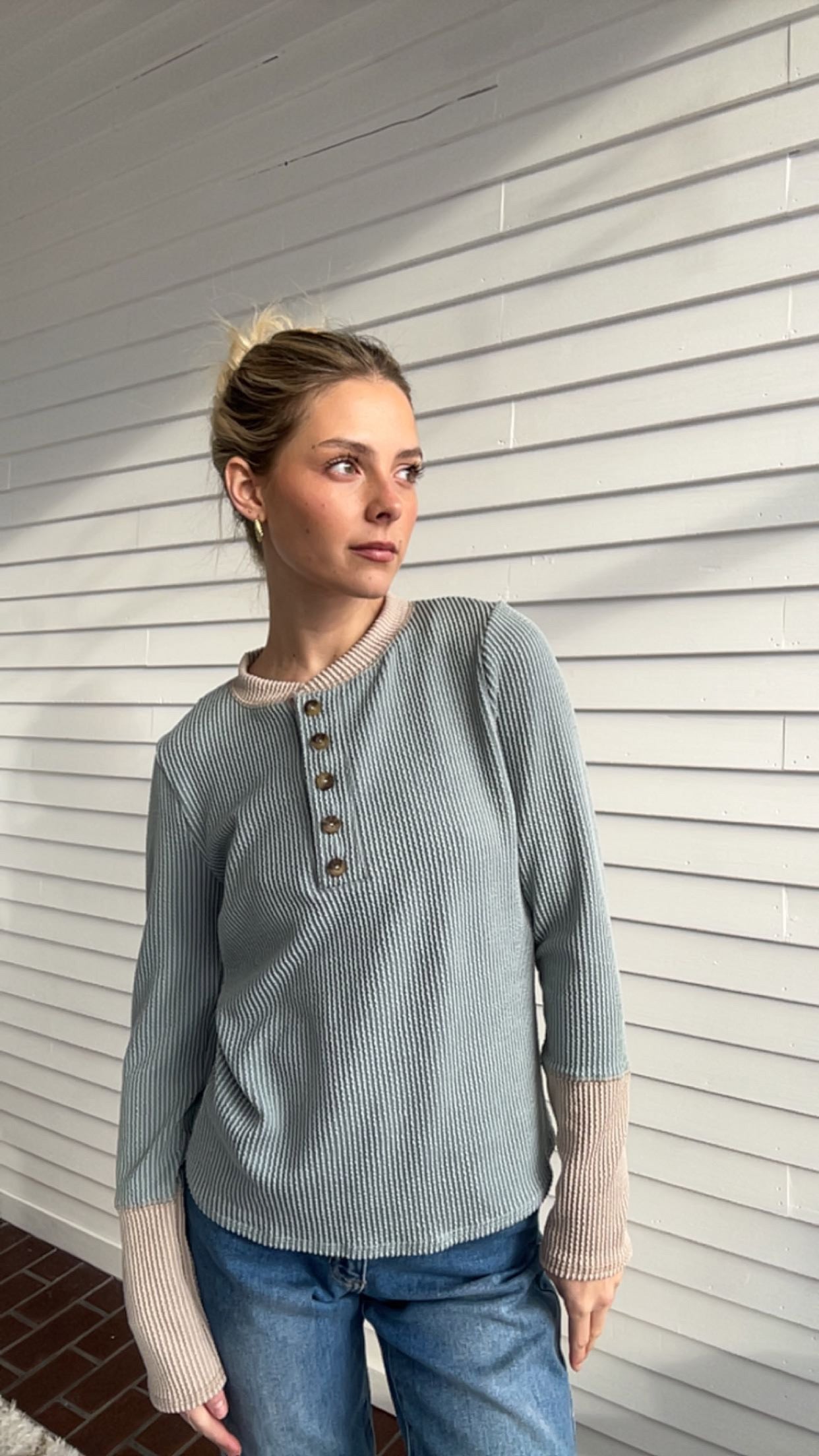 Effortlessly chic and undeniably comfortable, Rach's Top combines muted dusty blue and warm latte tones in a sophisticated palette. The textured ribbed pattern adds subtle dimension while maintaining a relaxed, casual aesthetic perfect for everyday wear. Layer it with ease or wear it solo for an understated look that feels both polished and approachable.