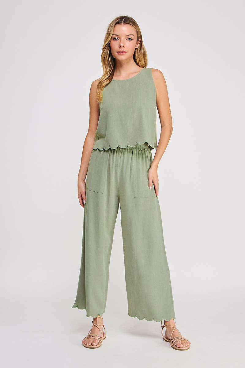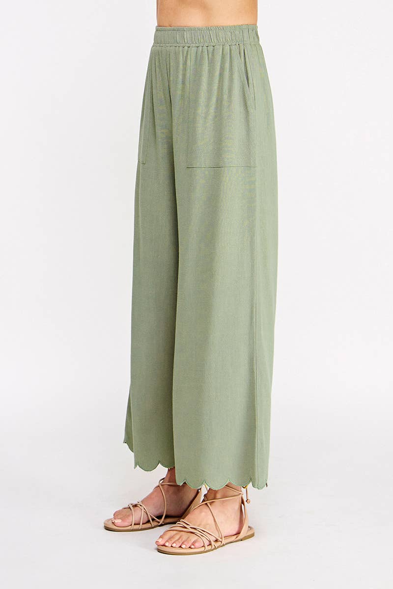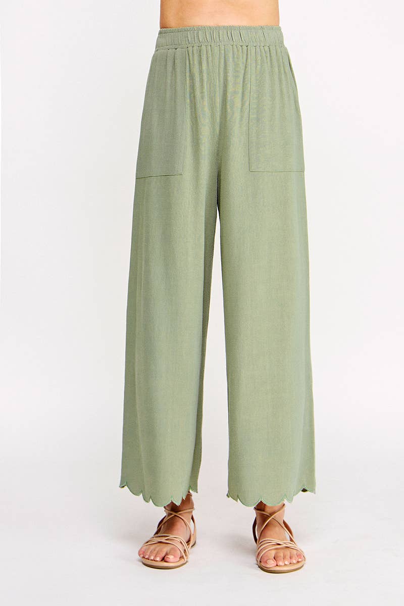 Scallop Hem Pants - Sage
