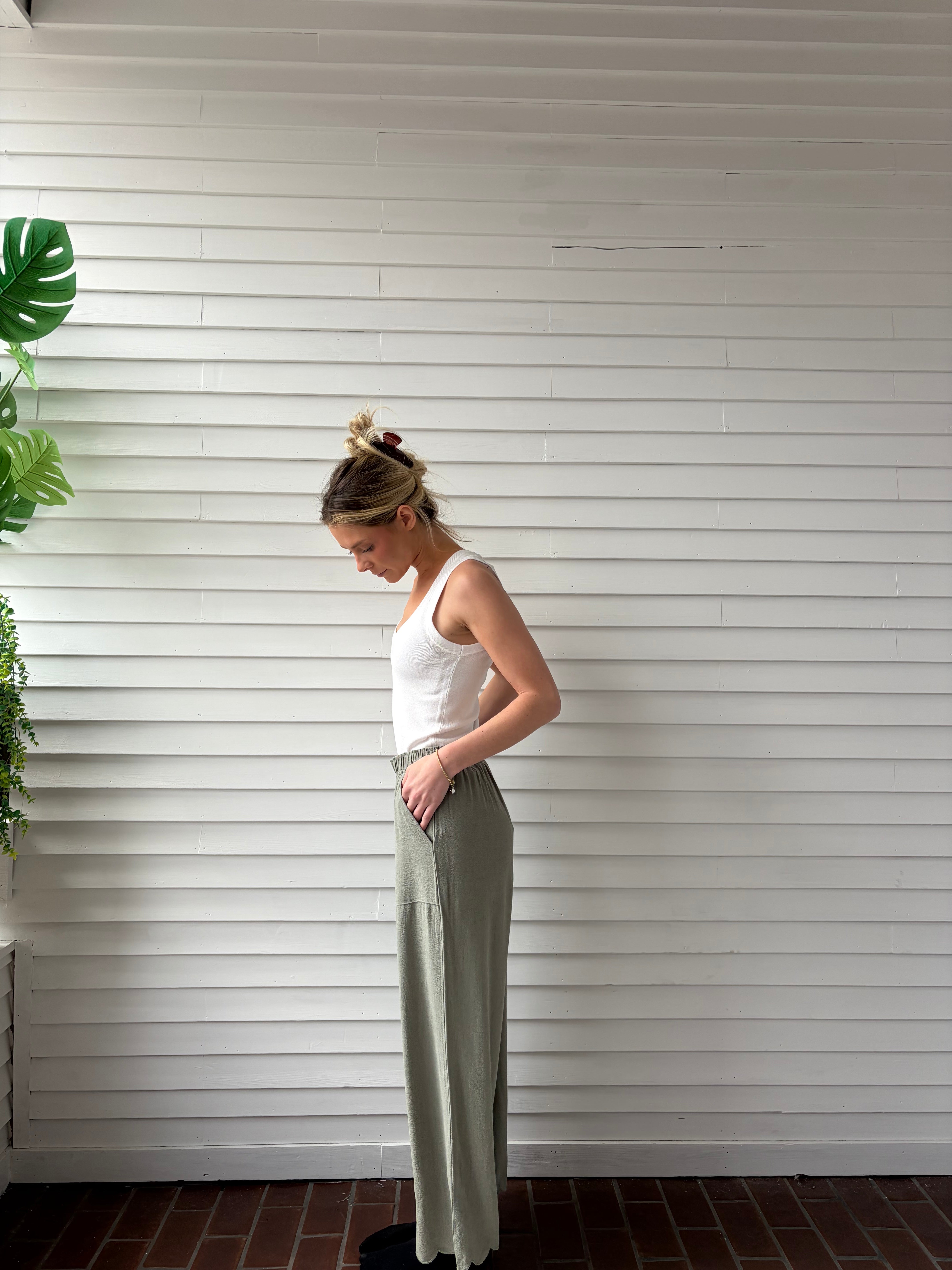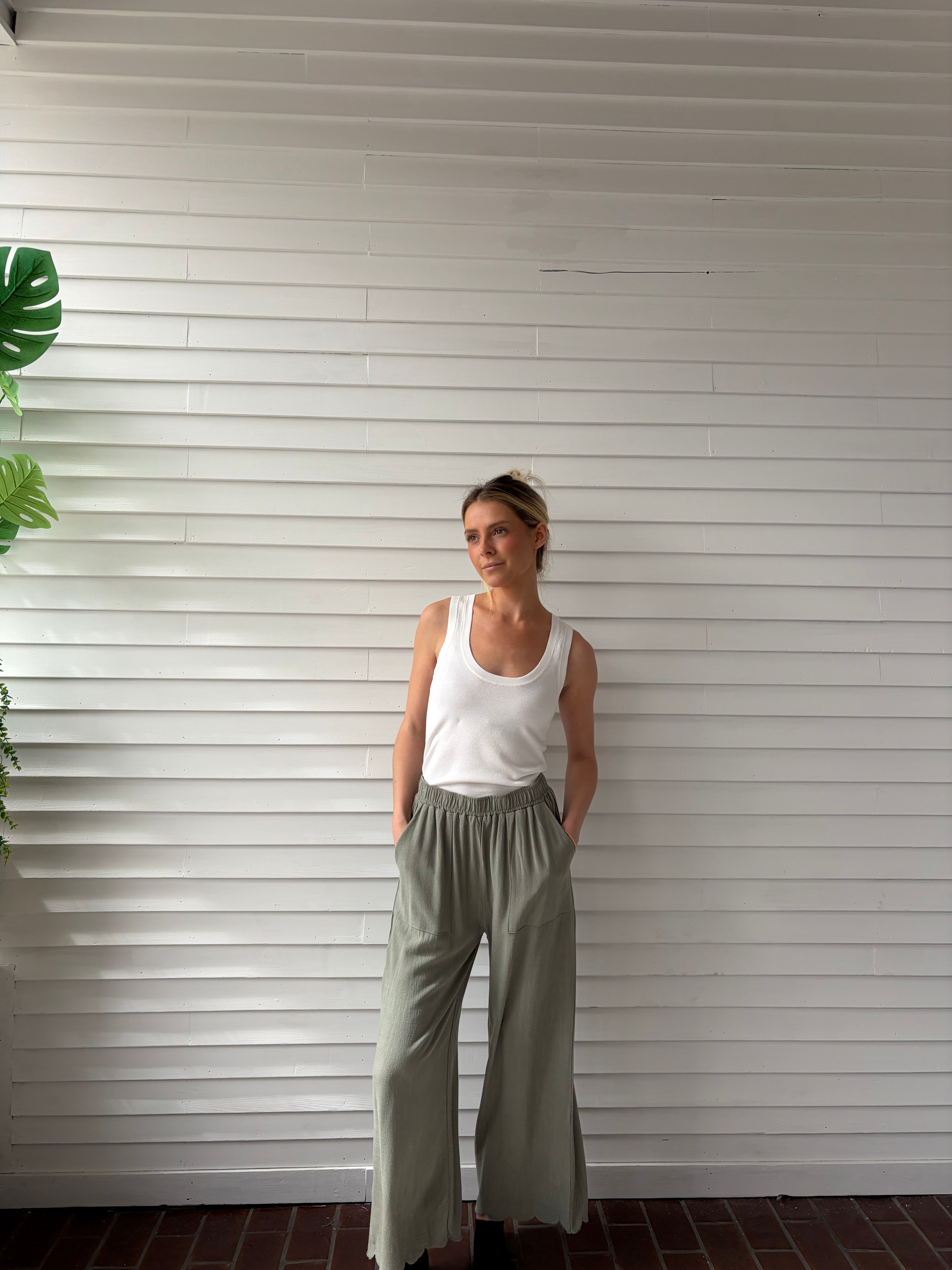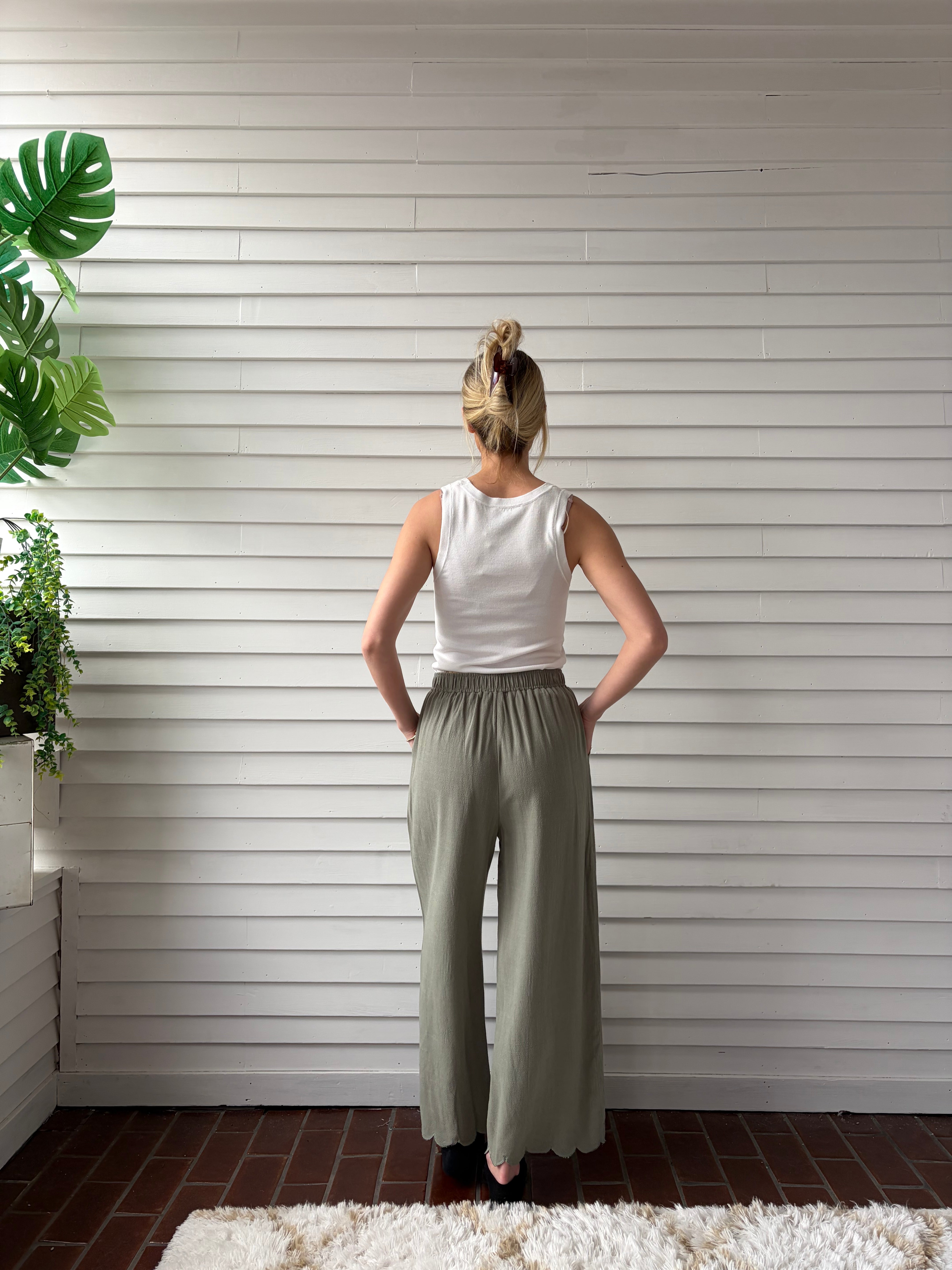 Scallop Hem Pants - Sage