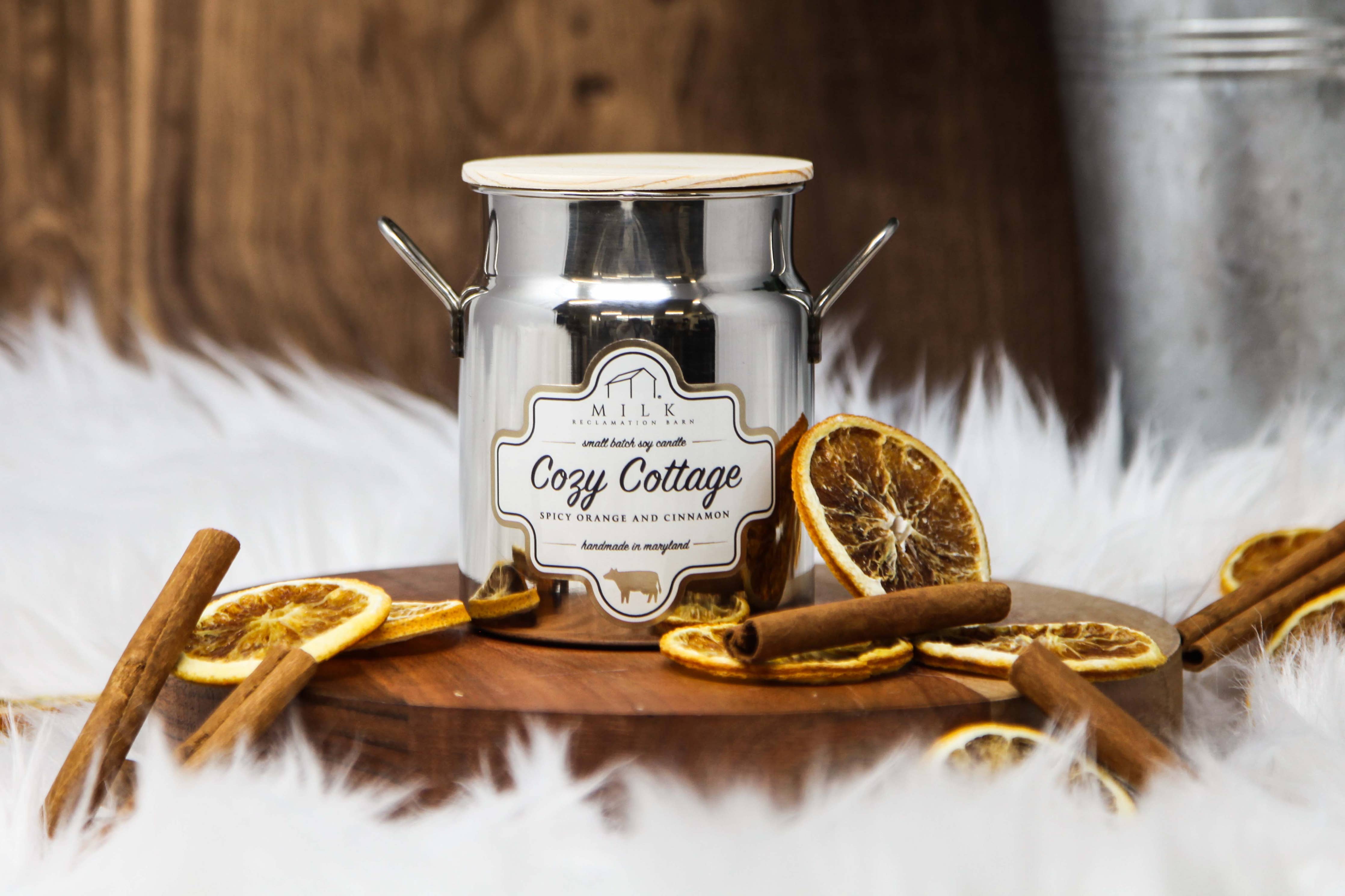 We have repurposed the classic milk churn into a beautiful soy candle. The Milk Churn Candle contains 100 percent American grown soy wax and a lead free cotton wick. Available in all of our classic Farmhouse scents. Each candle contains 12.5 ounces of wax and produces a burn time of approximately 80+ hours. Stainless reusable food grade container with a hand crafted wood lid.