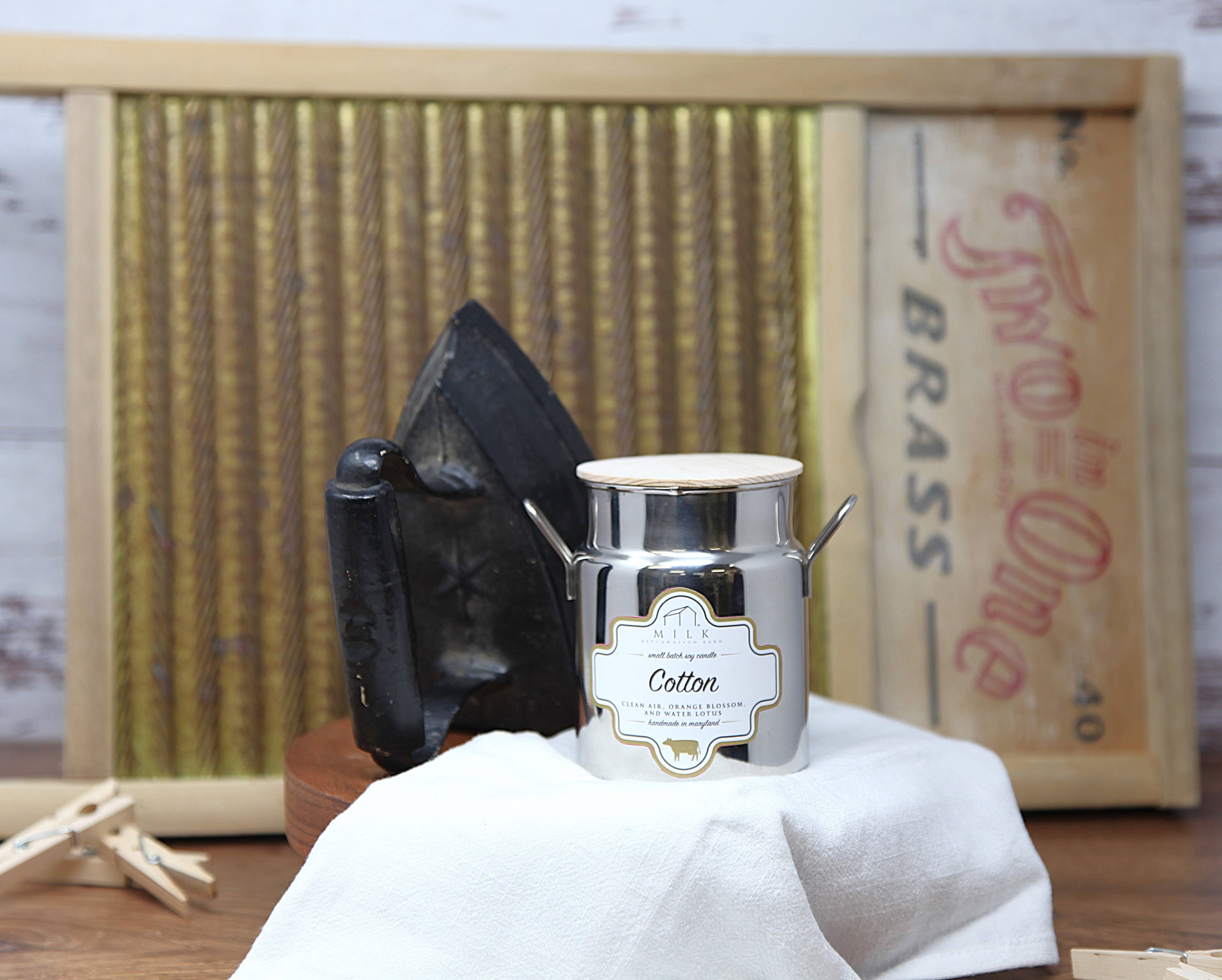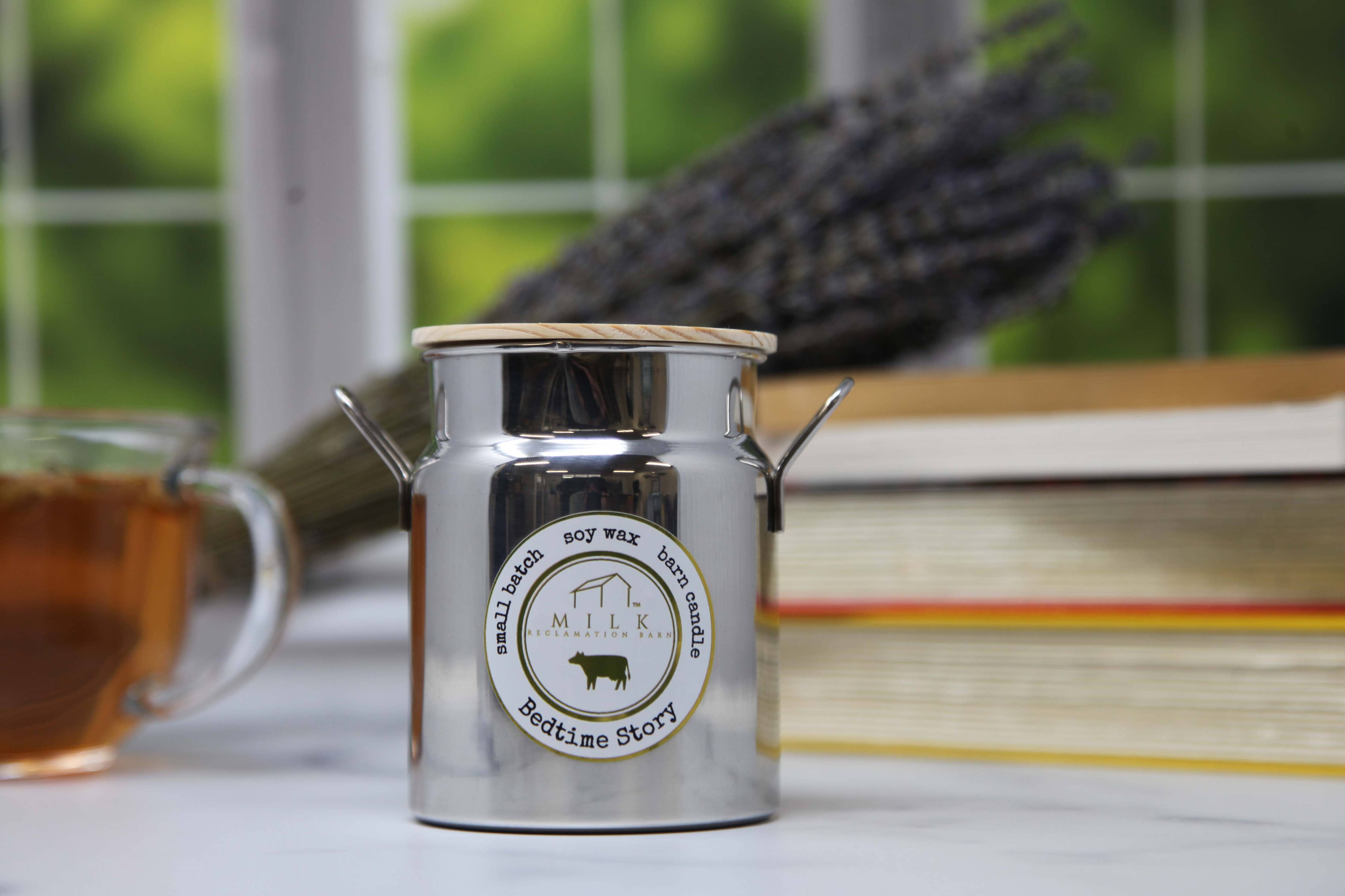 We have repurposed the classic milk churn into a beautiful soy candle. The Milk Churn Candle contains 100 percent American grown soy wax and a lead free cotton wick. Available in all of our classic Farmhouse scents. Each candle contains 12.5 ounces of wax and produces a burn time of approximately 80+ hours. Stainless reusable food grade container with a hand crafted wood lid.