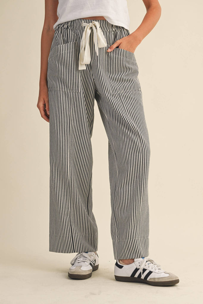 Elevate your casual wardrobe with these sophisticated striped wide-leg bottoms. The timeless black and white pattern offers versatile styling options for any occasion, while the elastic waistband ensures all-day comfort. Functional front and back patch pockets provide practical storage without compromising the polished silhouette. A modern essential that transitions effortlessly from day to evening.