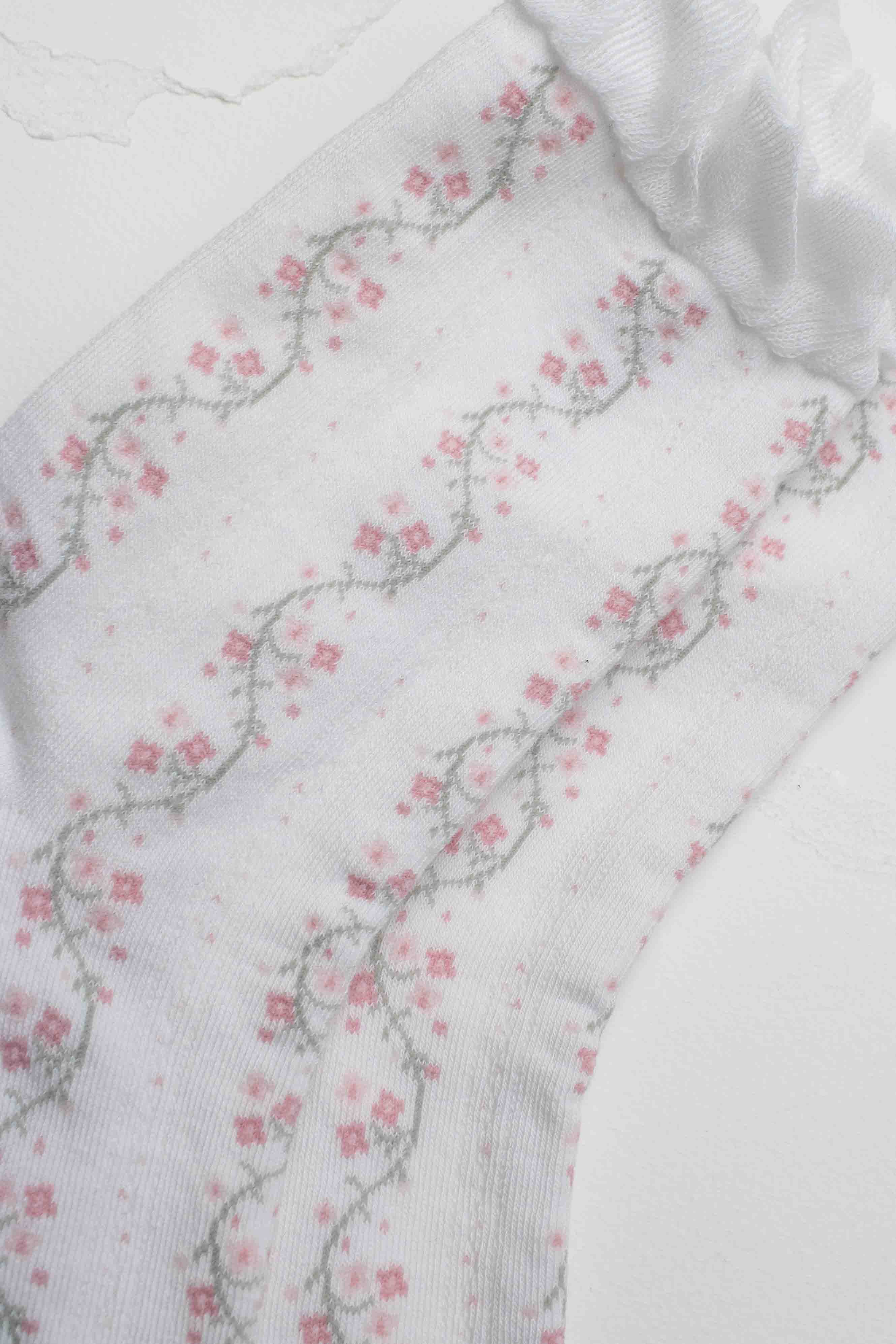 Tiepology - Vintage Floral Vine Crew Socks: White