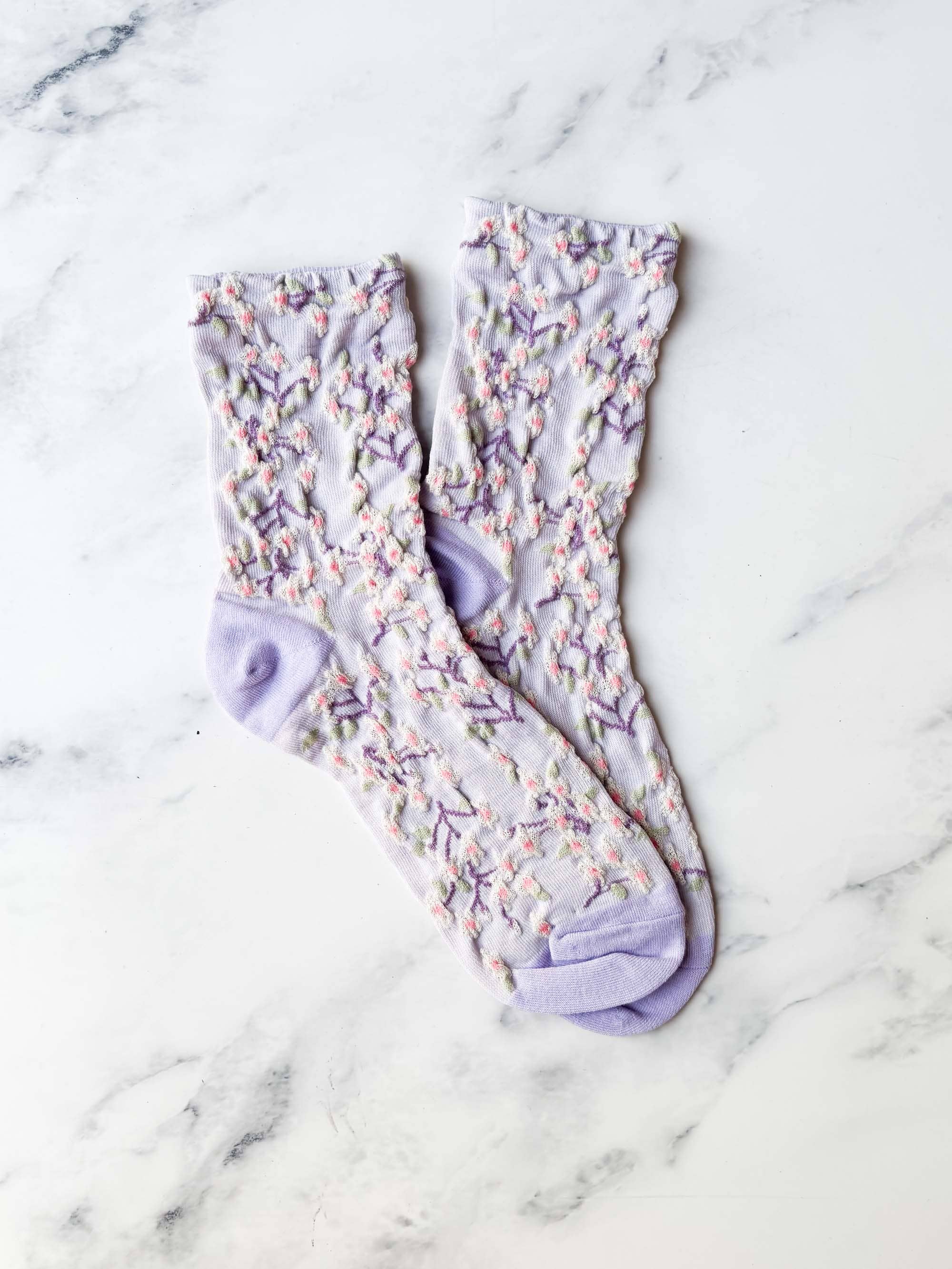 Tiepology Women's Spring Blossoms Casual Socks: Lilac